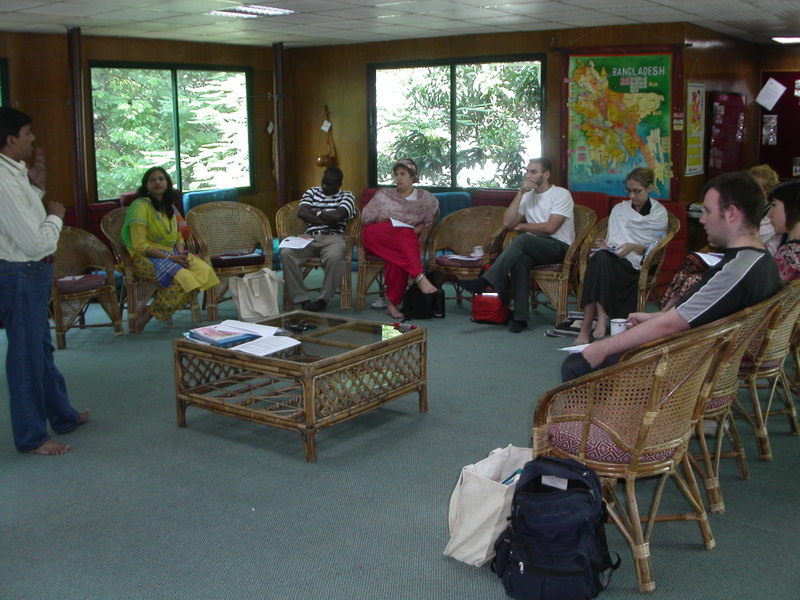 Bij aankomst in Dhaka bleek dat ik deel uitmaak van een groep van 10 VSO’ers: 2 Amerikanen, 2 Phillipino’s, 4 Engelsen, 1 Oegandees en ik. We verblijven allemaal voor een introductieprogramma in Dhaka alvorens naar onze standplaatsen te vertrekken. Ik ben de enige die voor een korte uitzending komt en zal daarom korter, 2 of 3 weken, in Dhaka blijven. De andere blijven hier minstens 4 weken. De groep is leuk en gevarieerd. Ik herken onmiddellijk de prettige mentaliteit van VSO’ers met elkaar: grote onderlinge solidariteit, positieve instelling en altijd veel lachen met elkaar.