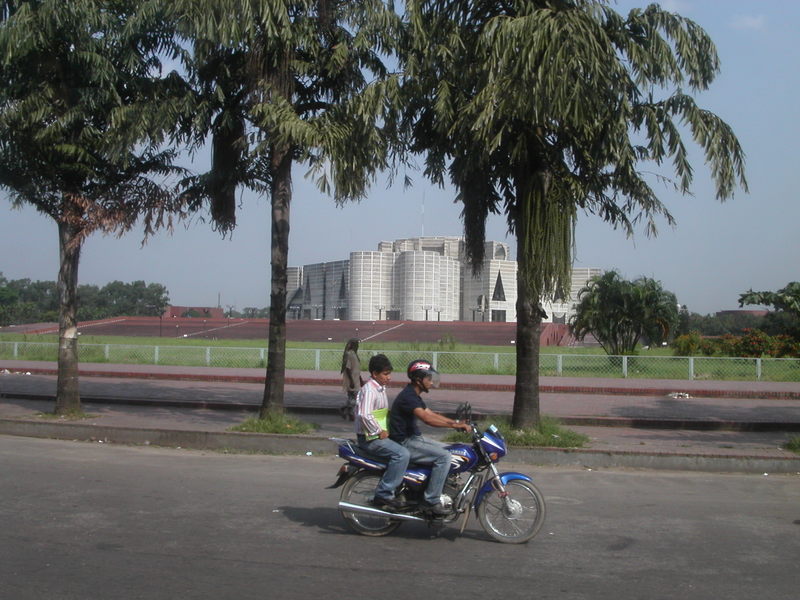 zoals te verwachten ook de kans gegeven worden. Zij verkoos echter in Bangladesh te blijven en te eisen dat haar zoon, die ook in de gevangenis zit, voor medische behandeling naar het buitenland mocht. Zo geschiedde, op voorwaarde dat deze machtige zoon zich uit de politiek terugtrekt. Het is een wonderlijke manier waarop de dames weer in de wereld terugkeren. Hun proces kunnen ze echter niet ontlopen, is gesteld. Het is toch slecht voorstelbaar dat straks een van hen gekozen wordt tot premier en dan wegens corruptie weer de gevangenis in gaat…….? Eigenlijk vraagt iedereen zich af wat er gaat gebeuren na de verkiezingen. De BNP en de Awami League zijn de grootste partijen en zijn nu allianties aan het smeden met de kleinere partijen, die ze nodig zullen hebben voor een meerderheid. Het organiseren van een gesprek tussen deze twee dames is tot nu toe mislukt. Er heerst een diep wantrouwen tussen die twee. Beiden hebben hun macht en status te danken aan een vermoorde ander; een vermoorde vader en een vermoorde echtgenoot. Ze schijnen elkaars naasten ervan te verdenken daar een rol in gespeeld te hebben. Veel mensen maken zich nu zorgen hoe het zal gaan na de verkiezingen; wat er met de oppositie zal gebeuren. Het wordt een spannende tijd. (Op de foto het parlementsgebouw in Dhaka)