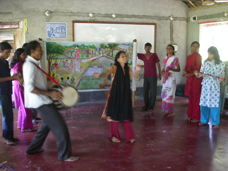 ier hard gewerkt. Ik ben daar zeer van onder de indruk. De staf van Shushilan bestaat uit gemotiveerde mensen. De directeur, tevens oprichter van de organisatie, is een zeer gedreven en intelligente man. Iedereen heeft diep respect voor hem. Ik ben afgelopen week een dag op pad geweest met hem. Ik heb ontzettend veel gezien in die ene dag en, met zijn tekst en uitleg erbij, heb ik veel kennis opgedaan over de problemen van deze regio en wat Shushilan daarmee doet (daarover in andere berichten meer). Op de foto zie je hoe er gewerkt wordt in de bewustwordings programmaas: hier repeteert de theatergroep van Shushilan met zang en dans vóór een rol met tekeningen, waar in uitgelegd wordt hoe dorpsbewoners hun eigen problemen naar voren kunnen brengen in de dorpsraad. De rol wordt steeds een stukje verder opgerold en dan verschijnt een andere schildering.