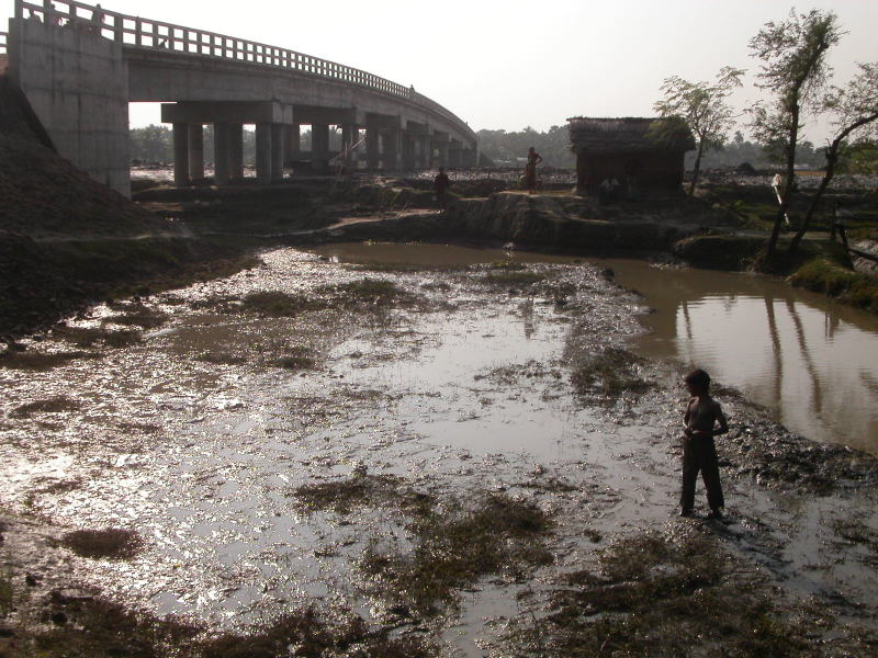 foto onder: nieuwe brug in Tala. N.b. de brug begint en eindigt gewoon in de modder. Wie weet komt er nog eens een weg.
