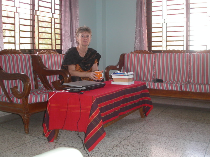 Het is al om half 6 donker en als je om 20.00 uur nog op straat bent dan lijkt het al erg laat in de avond. Ik vermaak mij dus ’s avonds veelal thuis met de laptop; wat uitzoeken, lezen of schrijven. Ik kan mezelf erg goed vermaken op die manier, maar na een week elke avond thuis wordt het wel een beetje saai. Eind november had ik een tweedaagse meeting in Tala (in de provincie) in het kader van het SCORE programma van VSO (EU gefinancierd; ik val onder dat budget), wat een zeer welkome afwisseling was. En vlak daarna kreeg ik een logee in huis. Een Italiaanse VSO’ster, die hier in een klein dorp werkt, was ziek en meldde zich aan de telefoon of ze bij mij kon logeren. VSO’ers helpen elkaar altijd, dat is een ongeschreven regel. Met Barbara ging ik naar ziekenhuis en kliniek voor onderzoek, testen en medicijnen. Zo heb ik nu dan ook wat gezondheidszorgvoorzieningen van binnen gezien. Voor de Mozambique-gangers onder de lezers kan ik melden dat het er hier beter uitziet dan in Beira; hoewel ik ook in Khulna niet graag geopereerd zou willen worden. Naar de Hollandse smaak laat de hygiene nogal te wensen over. Ik vond het gezellig om iemand in huis te hebben; we hebben heel wat afgekletst en ik heb mijn best gedaan om haar fysieke conditie en moreel op te krikken.