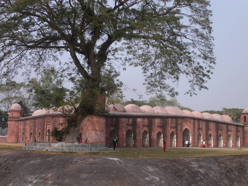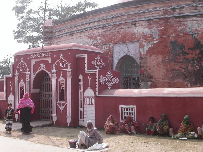 duizenden paardrijders en bouwde er in een mum van tijd talloze moskeeen en paleizen. Ook zorgde hij voor de aanleg van wegen en zoetwater vijvers voor drinkwater. Al in zijn tijd werd hij bechouwd als een soort heilige en dat is nog steeds zo.Toen hij overleed werd er een mausoleum voor hem gebouwd. Dat is nu een soort toeristisch bedevaartsoord. Bengalen gaan er op vrijdag h een om te bidden en om te baden onderaan de trappen in de vijver. Mannen en vrouwen gescheiden uiteraard. Vrouwen mogen het mausoleum niet in; ook bedeshi (buitenlanders) niet. De vrouwen schuifelen aan de buitenkant van het gebouw om de pilaren heen om zo toch dichtbij Khan te zijn.