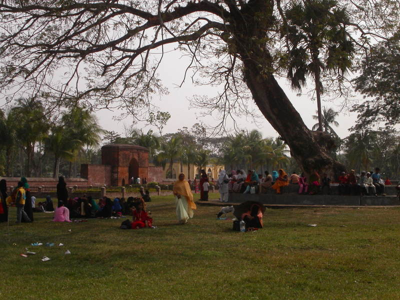 enorm grote mooie bomen. Veel bezoekers strijken er neer om uit te rusten, vooral vrouwen. Ongekend voor Bengaalse begrippen.