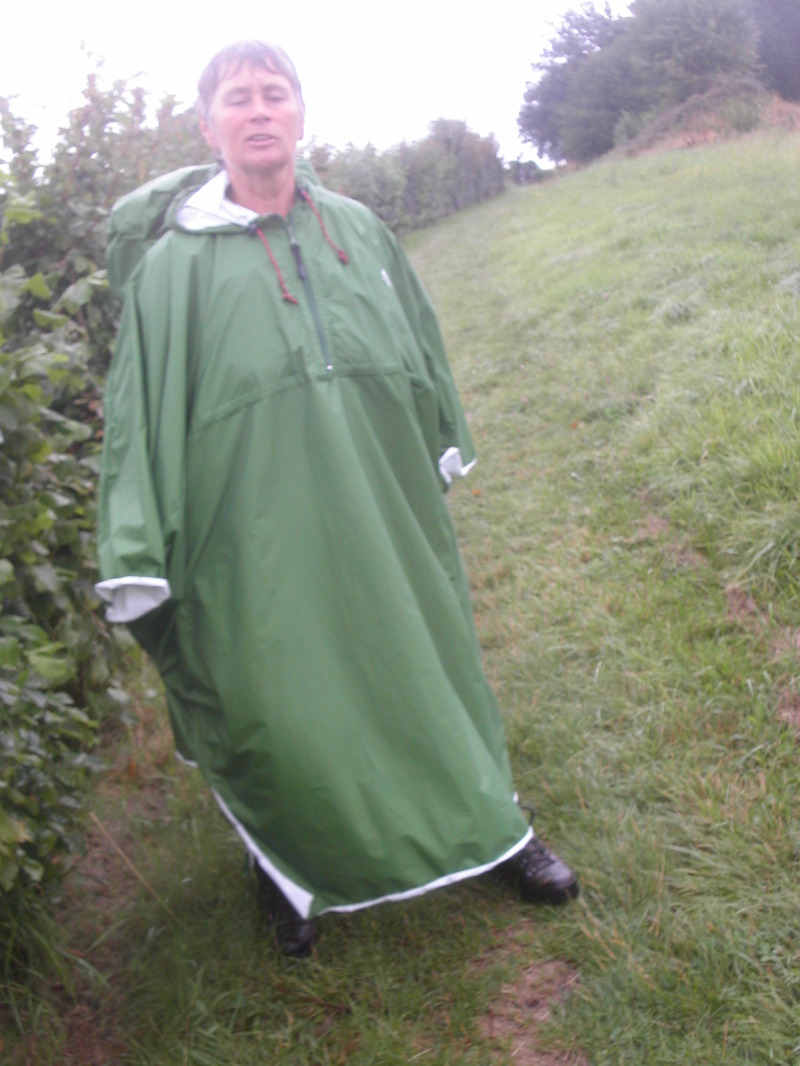 tegenkom onderweg. Overigens heb ik het genot van I-pod inmiddels ook ontdekt. Het is een feest om door een prachtig landschap te lopen met zelf gekozen mooie muziek op. Behalve aangenaam zonnig weer, waren er ook twee plensdagen. Nu weet ik zeker dat ik een fantastische aankoop heb gedaan met mijn rugzak-regenponcho! Alles blijft heerlijk droog onder zo’n ding. Die gaat in ieder geval mee. Ik twijfel nog welke loopschoenen het lekkerste zijn: de stugge goedlopende waterdichte Meindles of de soepele, maar niet waterdichte, Timberlands. De Spaanse hoogvlakte is droog en dor…maar het zal toch ook wel eens een keer regenen en echte bergschoenen heb je er niet nodig. Ik twijfel wat af over dit soort praktische vragen, die eenmaal vertrokken van levensbelang kunnen worden. Tenslot moet ik het van mijn voeten hebben. Mijn sandalen gaan zeker de rugzak in, want niets is heerlijker dan ’s avonds je voeten wat anders te gunnen. Een looptocht met rugzak noopt tot het goed afwegen van wat wel en wat niet handig en noodzakelijk is. Elke kilo minder is meegenomen. Inmiddels heb ik al heel wat verhalen gehoord van mensen die spullen achterlieten of terug naar huis stuurden. Nu heb ik al vaker een lange afstandstocht gelopen met rugzak, maar nooit langer dan een week. Het lichtgewicht tentje gaat uiteindelijk niet mee. Er zijn op de Spaanse Camino zoveel refugio’s/slaapgelegenheden dat dat echt niet nodig is. Een slaapzak neem ik wel mee omdat de voorzieningen niet altijd hygienisch zouden zijn. Een slaapmatje is misschien ook handig, hoewel hoe vaak zal ik dat nodig hebben? En is nou een petje of een hoedje beter?? In alle a