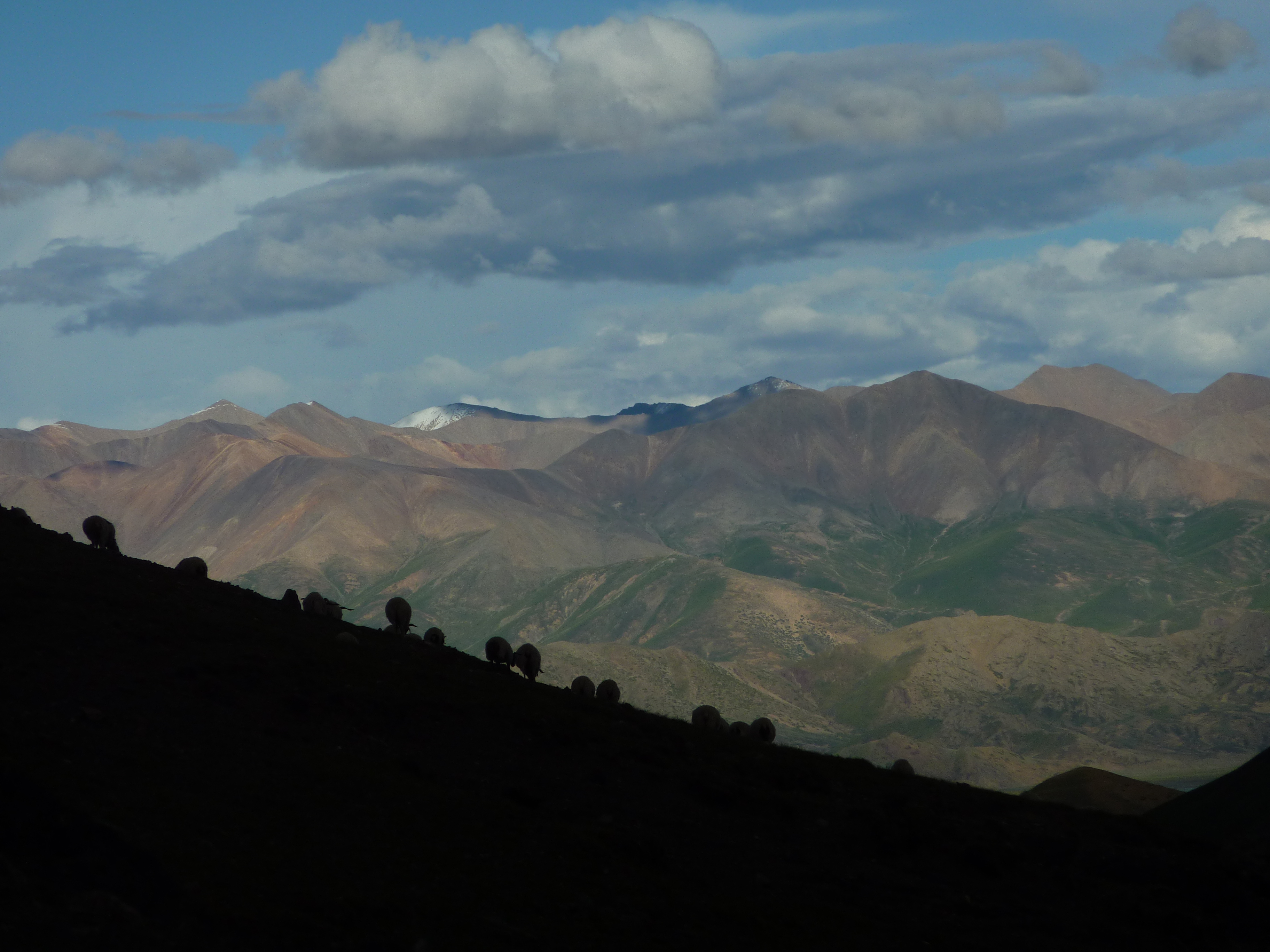 is er nog niet overal sneeuw. Bovendien hebben we heel erge mazzel gehad met het weer. Volgens zeggen was het nu 5 graden warmer dan het gemiddelde. Overdag was het bijna altijd zonnig en warm; 's nachts meestal rond het vriespunt, maar veelal een heldere sterrenhemel met een helschijnent maantje en een goed zichtbare melkweg. We hebben 3 weken gereisd op hoogtes tussen de 4500 en 5500 m met kleine uitschieters naar boven