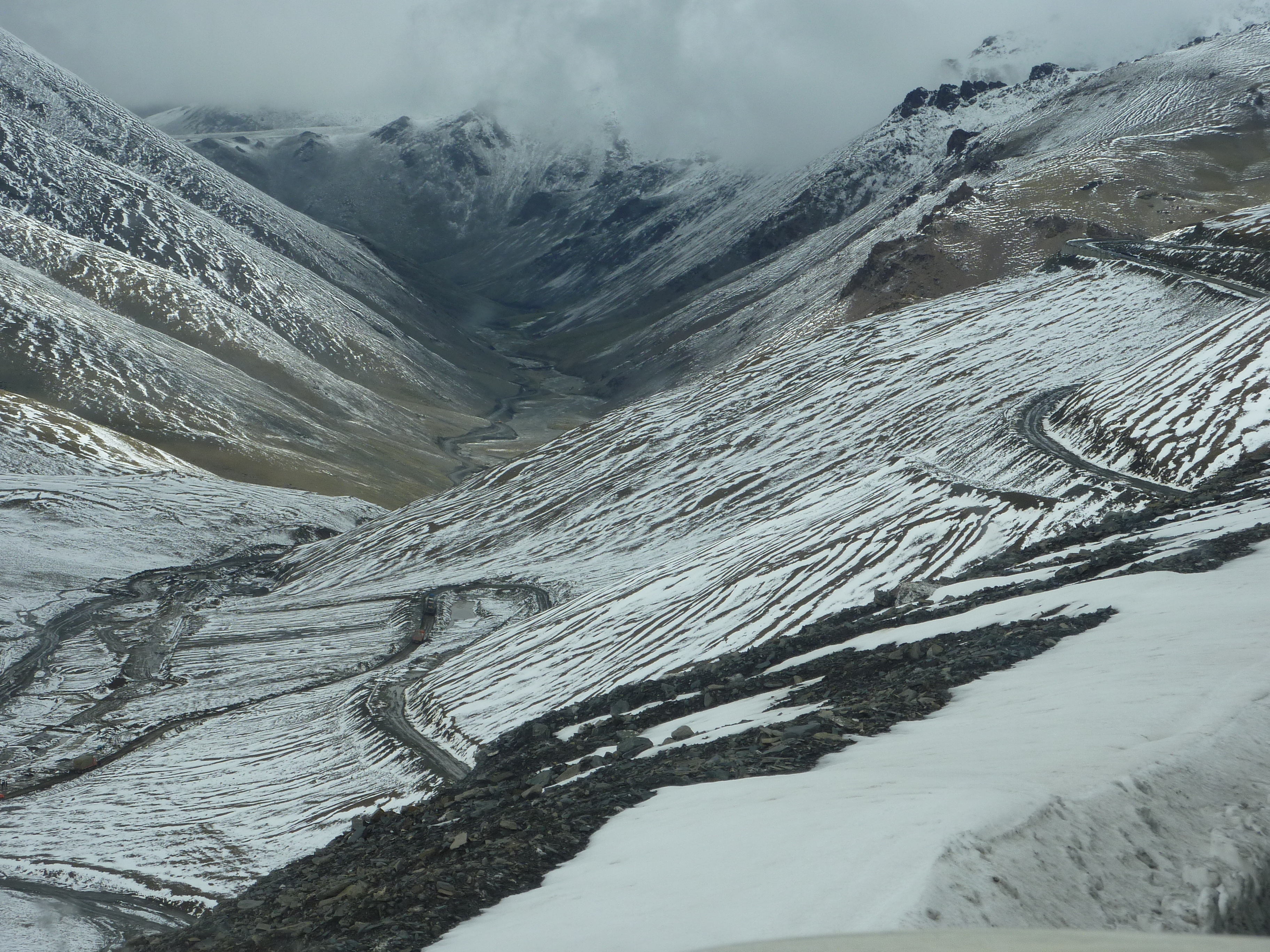 achtergrond; soms ver weg, dan weer dichterbij. Het sneeuwniveau ligt op deze tijd van het jaar vrij hoog. op 5000 m