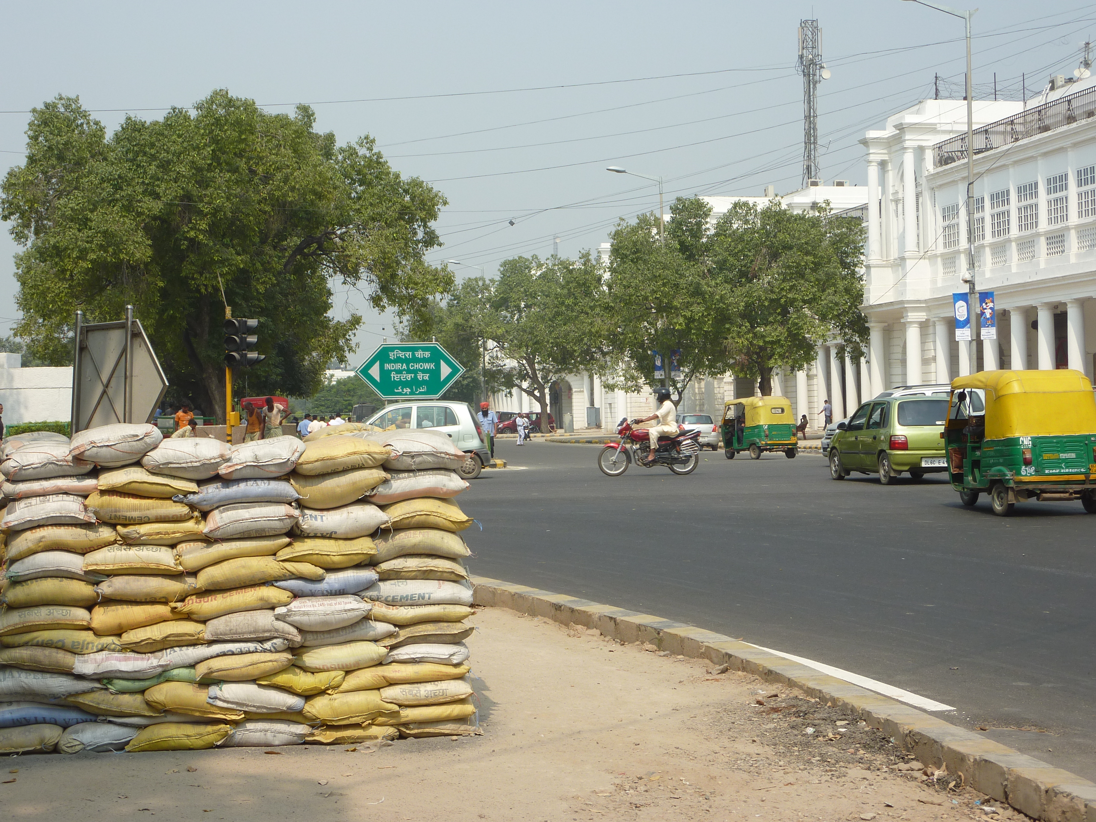 Gemenebest. Het schijnt dat prins Charles er voor de opening is. De stad is vol militairen; op rotondes zijn muurtjes van zandzakken opgericht, zodat ze bij een aanslag dekking kunnen zoeken. Alle winkels, bazaars, kraampjes zijn dicht. De stad ligt er relatief verlaten bij. Ik heb een paar uur rond gedwaald; langs India Gate gelopen (de triomfboog waar de gevallenen van WO1 en de Afgaanse oorlog van 1919 herdacht worden) en een museum geprobeerd, maar echt alles is dicht. Als je niet naar de spelen gaat is er niets te doen. Erg ongezellig; hoewel het ook wel lekker is dat de mensen zich niet aan je opdringen.