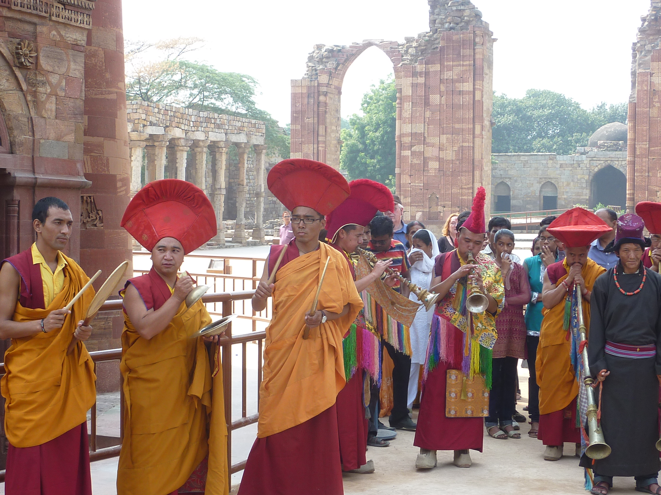 De eerste dag met mijn nieuwe reisgezelschap doorgebracht met een rondtour door Delhi. De beroemde Jama Mashid (moskee) bezocht, langs het memorial van de "vader van India" Ghandi, een Sikh tempel, het Rode Fort en het parlement. Hoogtepunt op deze dag vond ik het bezoek aan de Qutb Minar uit de 12de eeuw; dat is een moskee gebouwd op een hindoetempel, zodat je er allerlei invloeden door elkaar ziet. Ter plekke bleek er een muziekfestival te zijn, waar boeddhisten optraden na hindoes e.a. Allemaal uiterst kleurrijk.