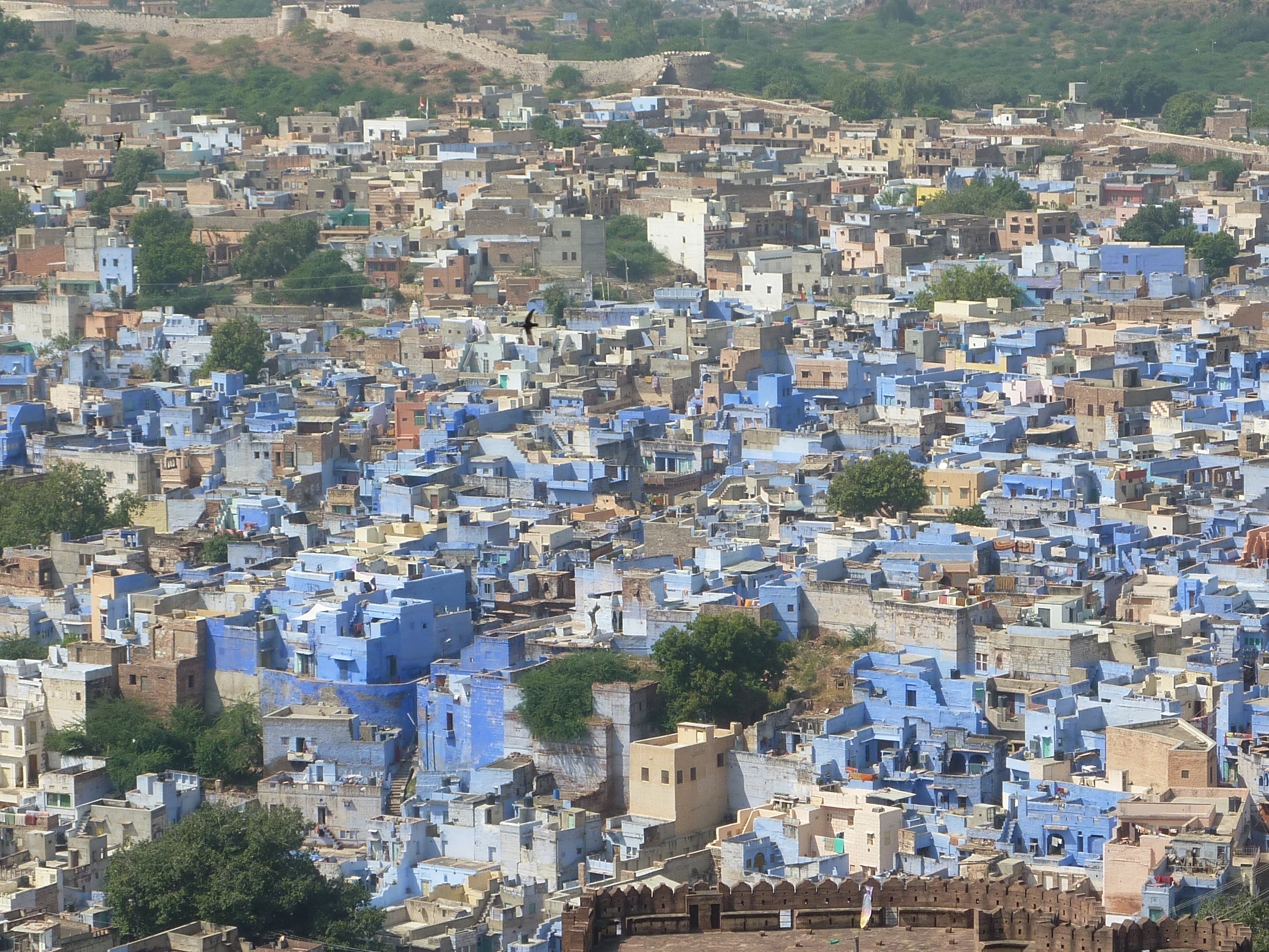 Na de rode- en de gouden stad verbleven we vervolgens in de blauwe stad Jodpur. die schijnt zo blauw geworden te zijn door gebruik van een bepaalde pesticide om de termieten te bestrijden. Er wordt echter ook verteld dat in al die blauwe huizen brahmanen wonen: de kaste van de priesters oftewel de hoogste kaste!