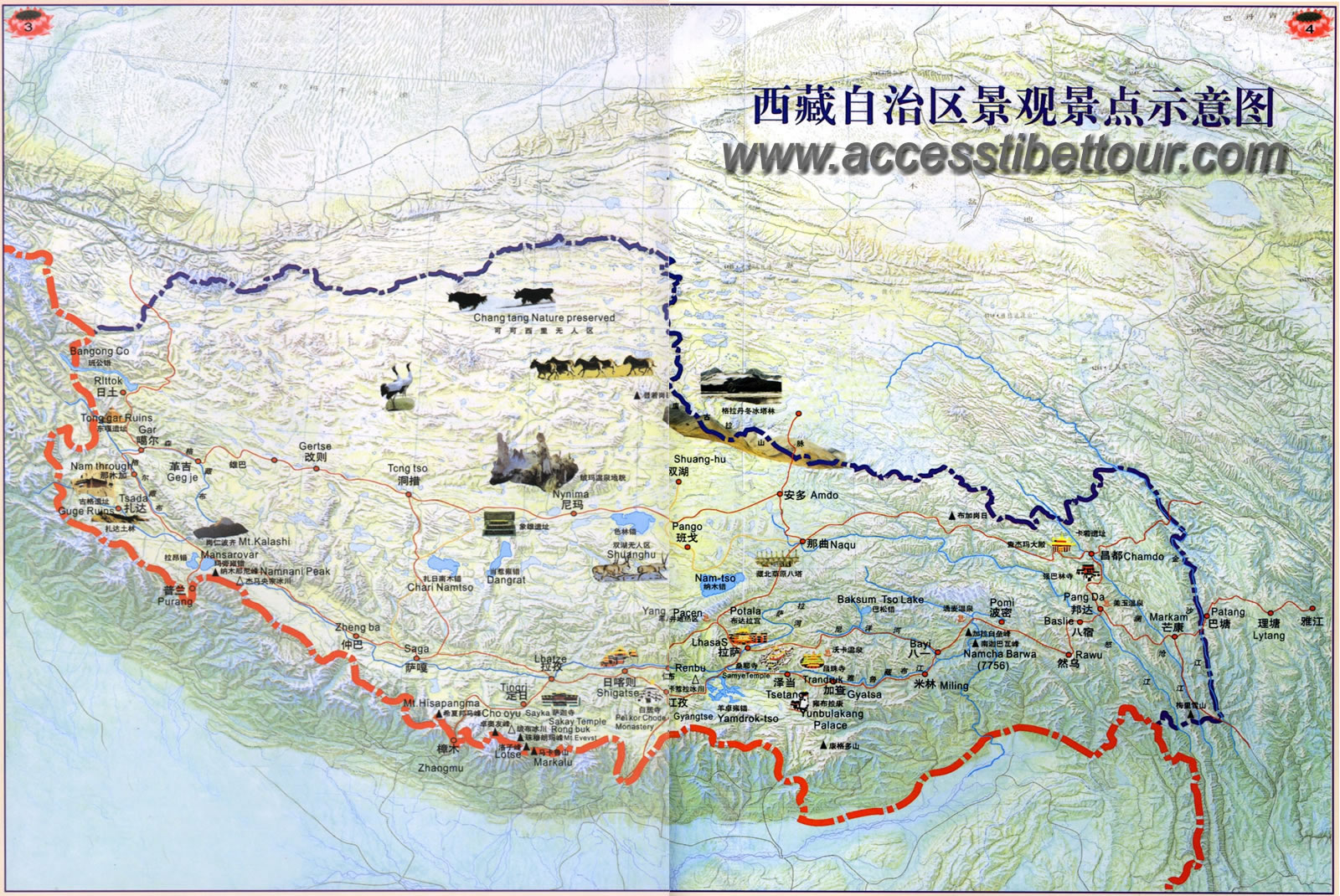 Vier weken lang heb ik door Tibet getrokken; met een groepje van de wandelpool. Vanuit Chengdu in midden China reisden we over de hoogst gelegen spoorlijn ter wereld naar Lhasa, de hoofdstad van Tibet. We zijn een paar dagen in die omgeving gebleven waarna we met 3 jeeps het Westelijk deel van Tibet doorgetrokken zijn. Het was een geweldige tocht langs kloosters, door ruige berggebieden en afgelegen dorpen, diep Tibet in, met veel avontuur en primitieve onderkomens. Met de Tibetaanse pelgrims hebben wij de heilige berg Mount Kailash gerond waar we over 5630m gelopen zijn! De Mount Everest hebben we niet beklommen maar we hebben er wel voor gestaan. Vervolgens zijn we met de bus naar Kathmandu in Nepal gereden en na 2 dagen doorgevlogen naar Delhi in India. In India heb ik nog 3 weken rondgereisd met een ander gezelschap door het schitterende Rajasthan. Dat is woestijngebied met sprookjesachtige plaatsen zoals de rode, de gouden en de blauwe stad. Tot slot met de trein naar Agra om de Taj Mahal te bezoeken en de heilige stad Varanasi. Twee zeer verschillende landen, maar beiden zeer indrukwekkend. Tibet heel leeg, wijds en ingetogen qua cultuur. Vanwege de hoogte ook koud. India druk, vol met mensen, heet, kleurrijk en enigszins opdringerig. Onderweg heb ik verschillende keren een verhaaltje geschreven op mijn weblog vanuit internetcafé’s. Nu thuis, kon ik er pas wat fotoos tussen zetten. Er is bij mijn akties iets mis gegaan met de volgorde van de artikeltjes. De meest recente stories horen bovenaan te staan. Maar om de een of andere reden wilde de story van de Mount Kailash zich niet houden aan die regel! (zie de datum) De rest staat wel in chronologische volgorde. Mijn verhaaltjes geven slechts een heel summiere impressie van willekeurige momenten. Er is zoveel waar ik niet over geschreven heb, en wat wel de moeite van het beschrijven waard zou zijn…………Dubbelklik op een foto als je die in het groot wilt zien.