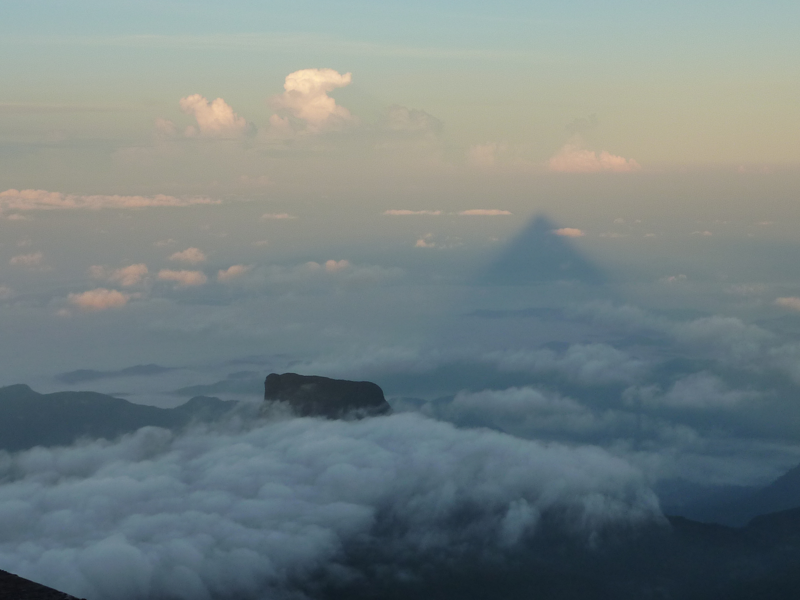 nacht afgelegd, voor zonsopgan; zoals het hoort. Het is een imposante belevenis. De hele route is verlicht en her en der zijn theestalletjes en tempeltjes. Veel families beklimmen de berg. Ik ben om half 3 vertrokken; hetgeen ruim voldoende bleek te zijn om voor de zonsopgang van 6 uur op de top te staan. Het schouwspel daar was werkelijk magnifique. Je staat boven de wolken en kunt ontzettend ver kijken. ik heb ook de beroemde driehoek gezien, die zich aftekent in de wolken wanneer de zon eenmaal boven de bergen uitkomt. Het is feitelijk de schaduw van de berg die je in de wolken gereflecteerd ziet. Heel bijzonder.