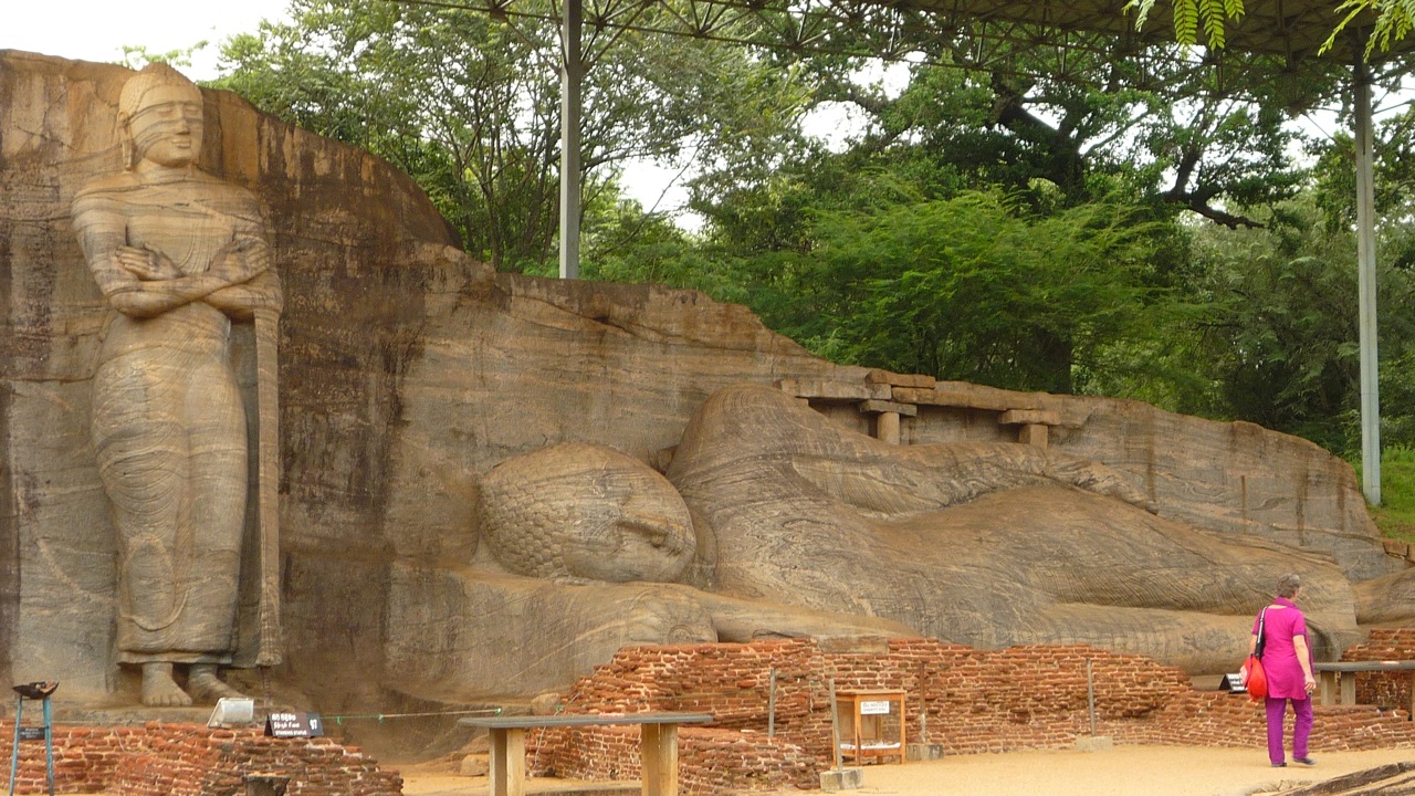 de machtszetel in Sigirya boven op een rots. Er doet zich een merkwaardig verhaal de ronde over deze koning, maar in ieder geval heeft hij de rots achtergelaten met prachtige fresco's van mooie meisjes met bloemen. Helaas moet ik melden dat ik de top van deze rots niet bereikt heb; mijn hoogtevrees speelde mij parten. De fresco's heb ik wel gezien en inderdaad, die zijn wondermooi!