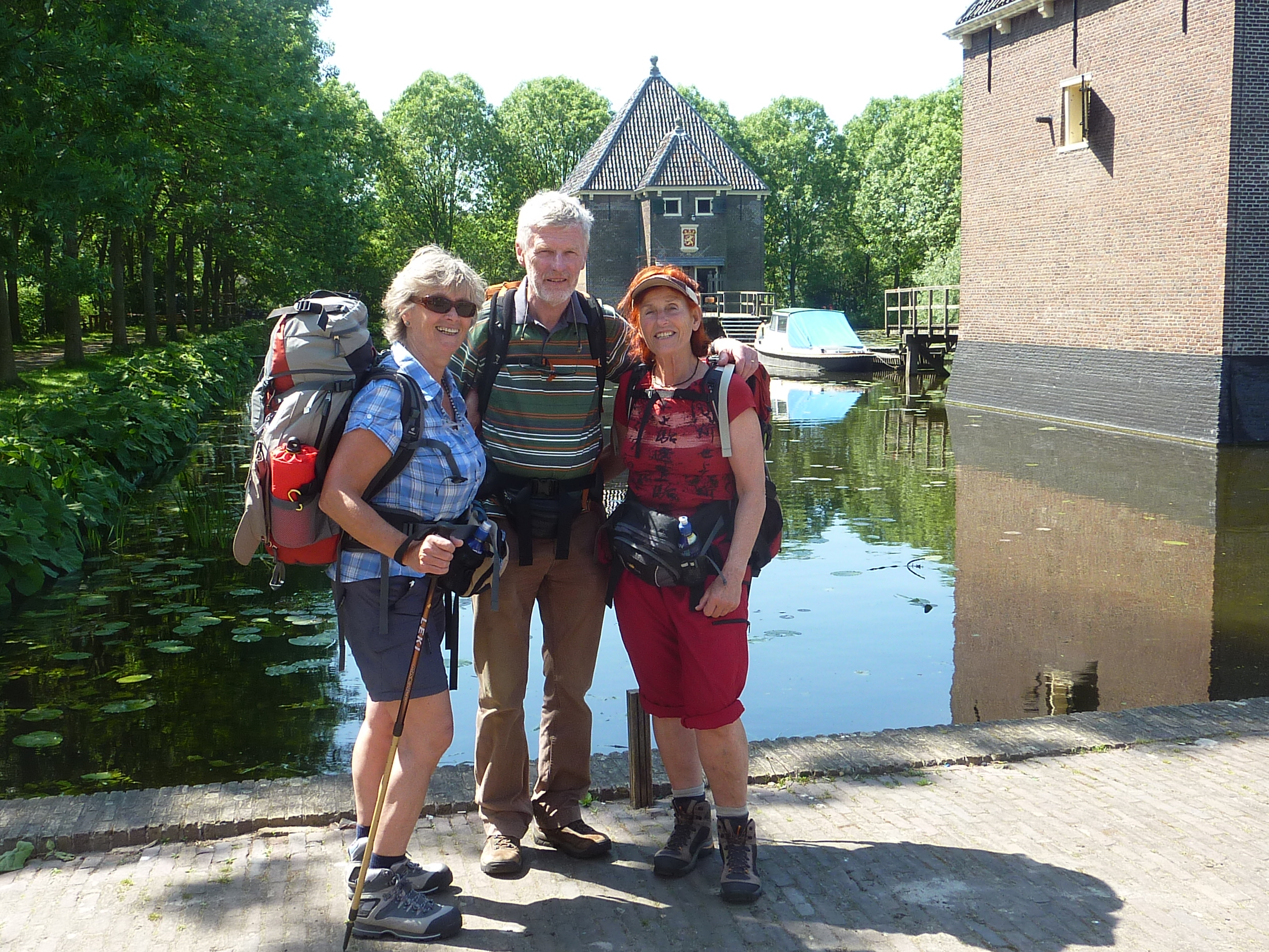 We zijn aan het proeflopen……met rugzak…… Toos, Ben en ik. Het lijkt wel alsof ik het voor het eerst ga doen; en dat is bepaald niet waar. Mijn rugzak is met zijn 38 liter niet zo groot, maar toch heb ik er weer te veel kilo's ingepropt. Op deze wandeling naar Delft langs de Schie passeren we het kruithuis. Er wordt geschilderd. Het is een fraai pand en met de bruinrode poorten wordt het nu nog mooier. Afgelopen weken hebben we wekelijks dagtochten gemaakt om onze voettocht voor te bereiden en de kilometers goed in de benen te krijgen. We genieten van het lopen en het buiten zijn. Vandaag, ná deze wandeling, zegt mijn rug duidelijk dat ik op deze manier niet 6 weken door Frankrijk kan gaan lopen. Dus heb ik vandaag alles er weer uitgegooid en ben opnieuw gaan selecteren. Al die medicijnen mee is onzin; als ik wat nodig heb koop ik het maar onderweg. Dat geldt ook voor toiletartikelen. Mijn sandalen ruil ik in voor lichtere slippers; een t-shirtje minder is ook goed en die tweede lange broek laat ik ook maar thuis. Het blijft elke keer weer een heel gepuzzel om te bedenken wat strikt noodzakelijk is. Dinsdag gaan we op weg. Ik heb dus nog een paar dagen om te verzinnen wat er nog meer uit kan.