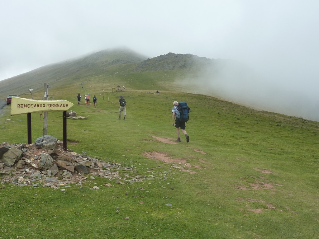 De eerste werkdagen als hospitalero zitten er op. Met zijn vieren zijn we vanuit St. Jean Pied de Port hier naartoe gelopen. Pittige wandeling berg op maar het was prachtig loopweer: niet te warm, zonnetje en wat wolkjes. Na ons aankomst-biertje werden we bij de hand genomen door Gerard (van de Jacobsvereniging) door alle gebouwen. En nu staan we er dan als nieuwe ploeg helemaal alleen voor. We zijn met zijn 7. Dat lijkt misschien veel maar het is hier groot en het is hoogseizoen. Toen ik in 2009 hier sliep op mijn Camino was er alleen wat we nu de “oude herberg” noemen, een grote open zaal met 120 bedden. Maar het voormalige grote kloostergebouw is nu ook verbouwd tot herberg. Daar kunnen nog eens 180 wandelaars slapen, verdeeld over 3 etages. Dit gebouw is van buiten mooi oud maar van binnen heel modern en superpraktisch ingericht. De Spanjaarden hebben net vakantie gekregen, dus gister zaten we helemaal mudje vol. Veel spanjaarden starten hier in Roncesvalles met hun Camino. Naast deze 300 beschikbare bedden moesten we zelfs nog een ander zaaltje in gebruik nemen als “overloop”. In geval van nood zijn er zelfs nog 184 plekken in cabines op een grasveld. We zijn hier niet voor één gat te vangen. Ik heb de afgelopen 2 dagen in de oude herberg gewerkt, samen met Wim. Dat is zorgen voor de ontvangst van de mensen en hen een paar essentiele regels uitleggen. En natuurlijk heel veel vragen beantwoorden, waar wij overigens ook (nog) niet altijd het juiste antwoord op weten. Het publiek is heel internationaal; ik spreek van alles wat maar Spaans en Frans door elkaar spreken is erg verwarrend (voor mij); afwisselen met Engels is gemakkelijker. Mij is al gevraagd of ik Portugese ben…….tja dat Portugees krijg ik er toch niet helemaal meer uit. Geen nood, want iedereen verstaat me goed. En het resultaat is toch fantastisch: er heerste een serene rust op de zaal zodat de vermoeiden al vroeg lagen te slapen. ’s Avonds