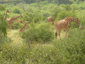 Echt toeristisch was het Samburu National Parc, waar we een gezellige basic campsite hadden. Met onze eigen truck zijn we er 3x op gamedrive geweest. En we hebben er van alles aan wild gezien: leeuwinnen, een hyena met haar kleintjes, olifanten, veel giraffen, impala’s, gerenuks, gemsbokken, zebra’s etc.