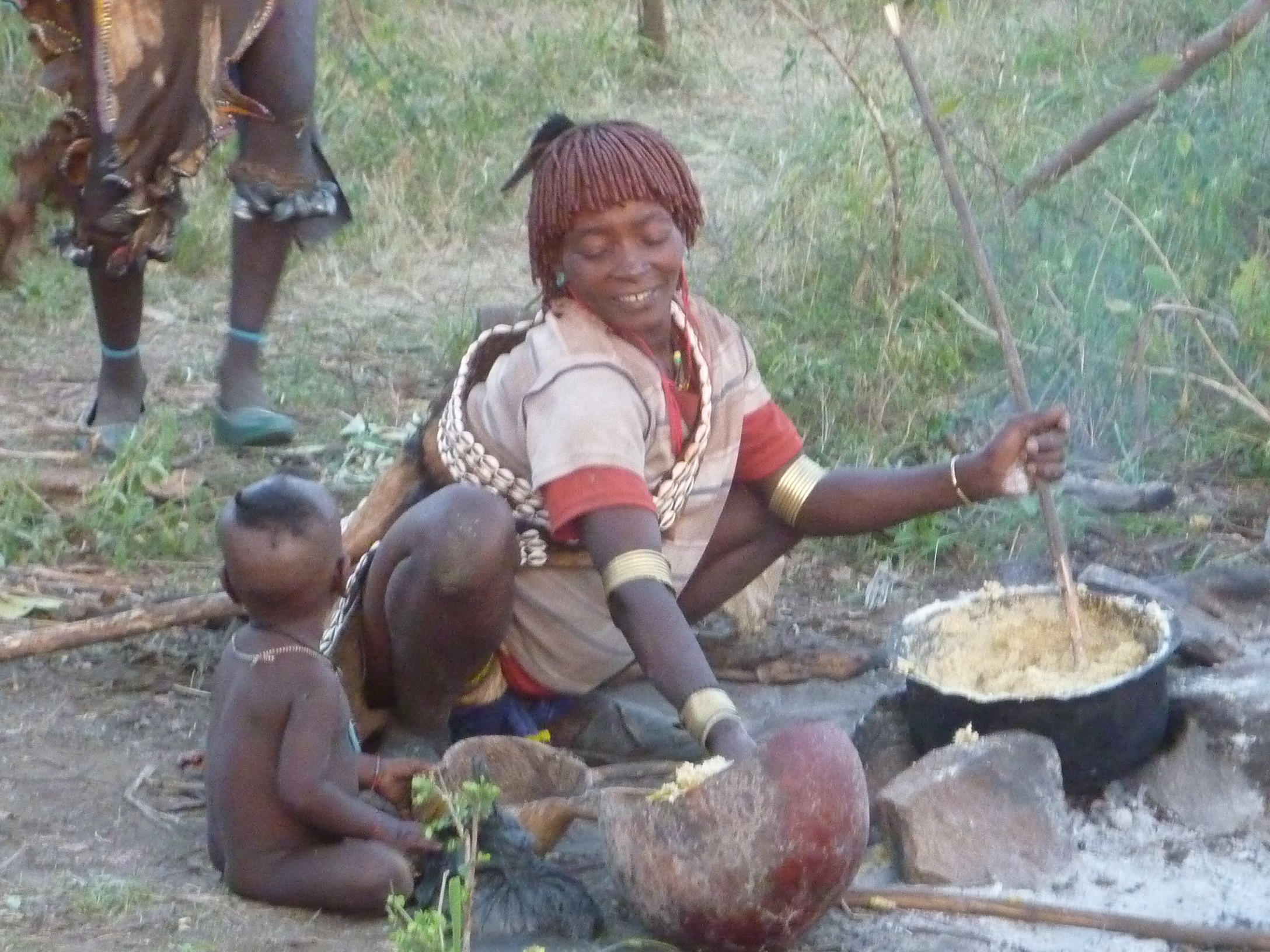 Oud en nieuw vierden we op de campsite in Arba Minch, met uitzicht op een meer met krokodillen en hipo’s. De knobbelzwijnen liepen er langs de tenten te snuffelen. Helemaal in Hollandse stijl hebben we daar de hele avond oliebollen staan bakken en mango beignets (bij gebrek aan appels, maar ook bijzonder lekker). Dit deed me echt denken aan mijn oudjaar ’97-’98 bij de Iguazu falls in Brazilie, waar ik me met de Ashraf groep bezighield met appel beignets bakken in de bloedhitte. En het is weer eens wat anders dan de dagelijkse injera.