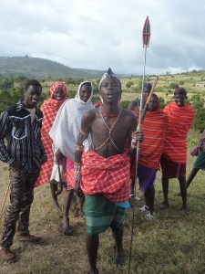 Ik bleef me echter verbazen over die fraai uitgedoste Samburu jongens met hun speren en stokken. Tussen hun 15de en 30ste zijn zij ‘ krijgers’ en moeten ‘ beschikbaar’ zijn, maar eigenlijk hoeven ze niks te doen. Zij lopen alleen maar mooi te zijn. Pas op hun 30ste zijn ze volwassen.