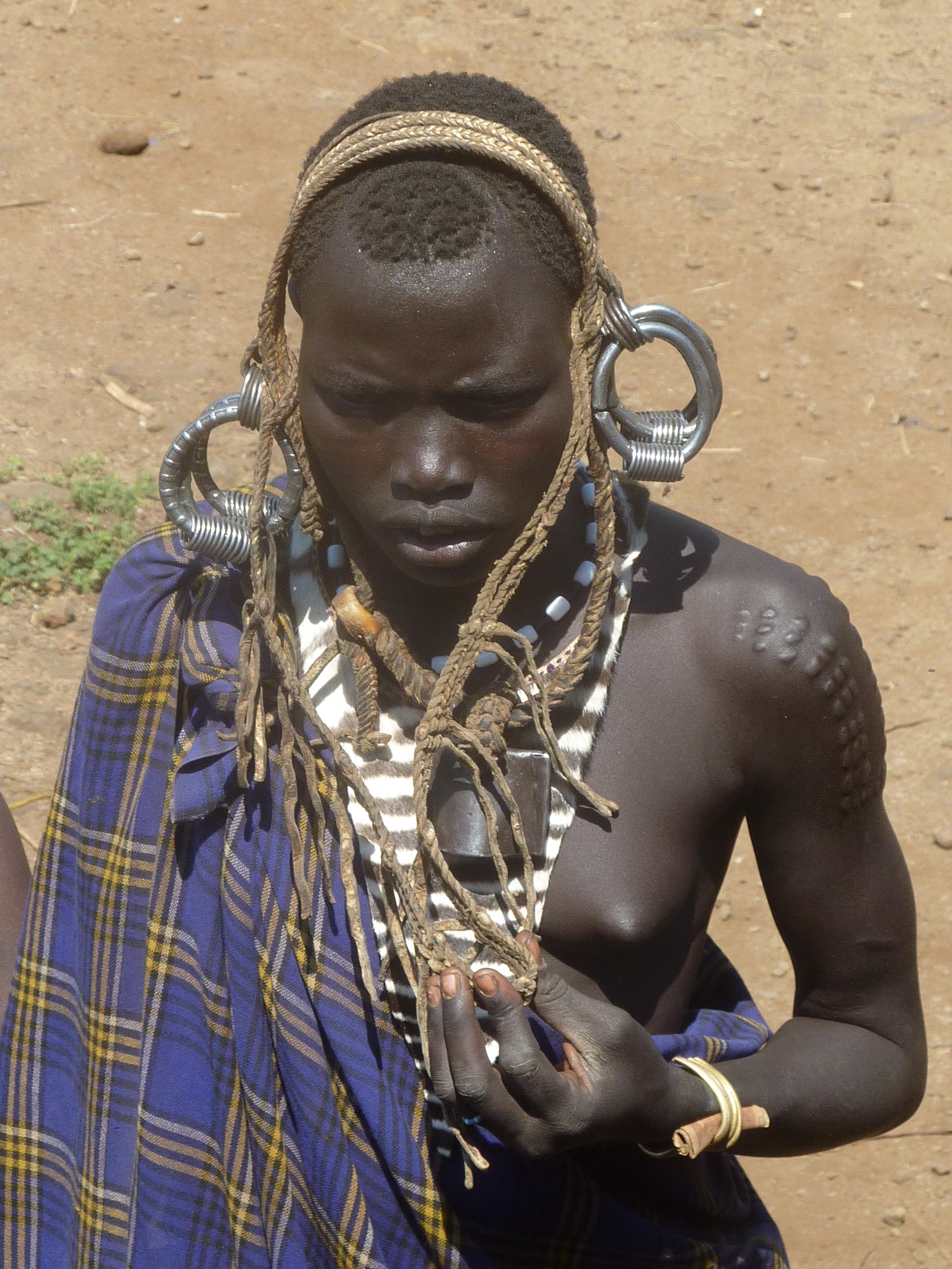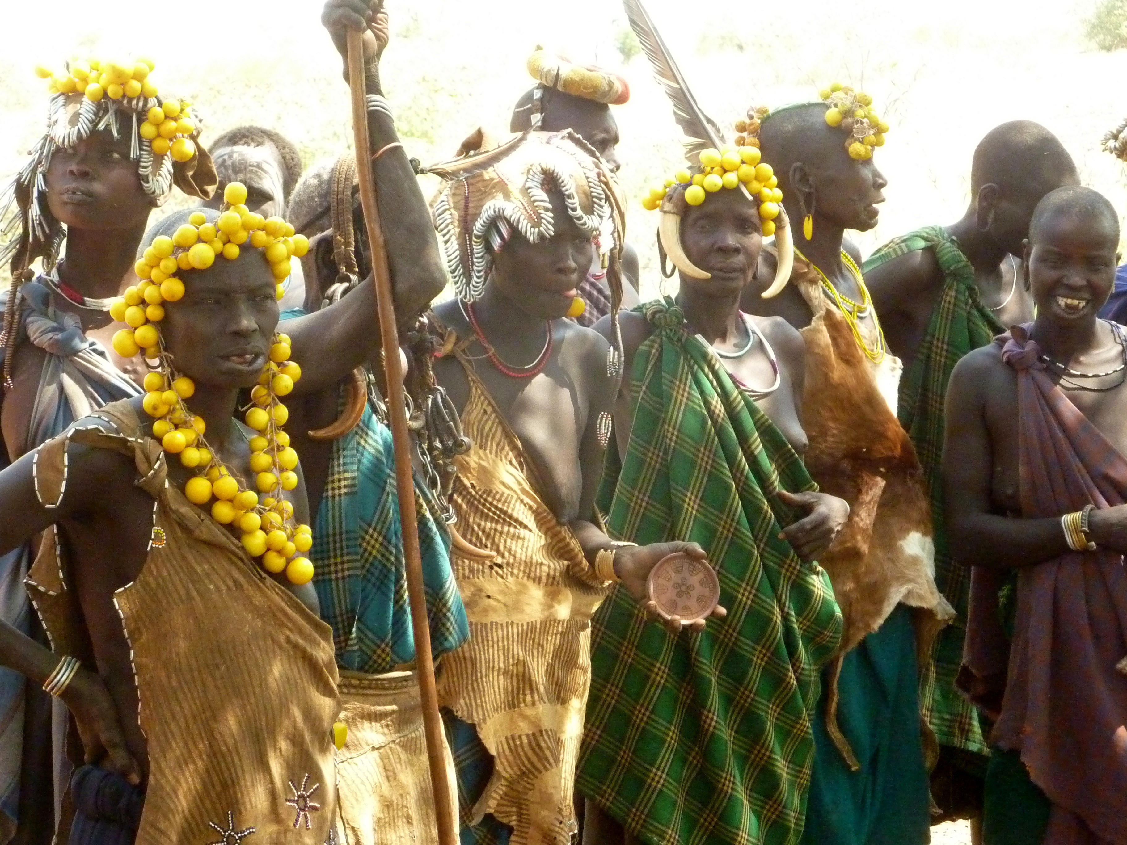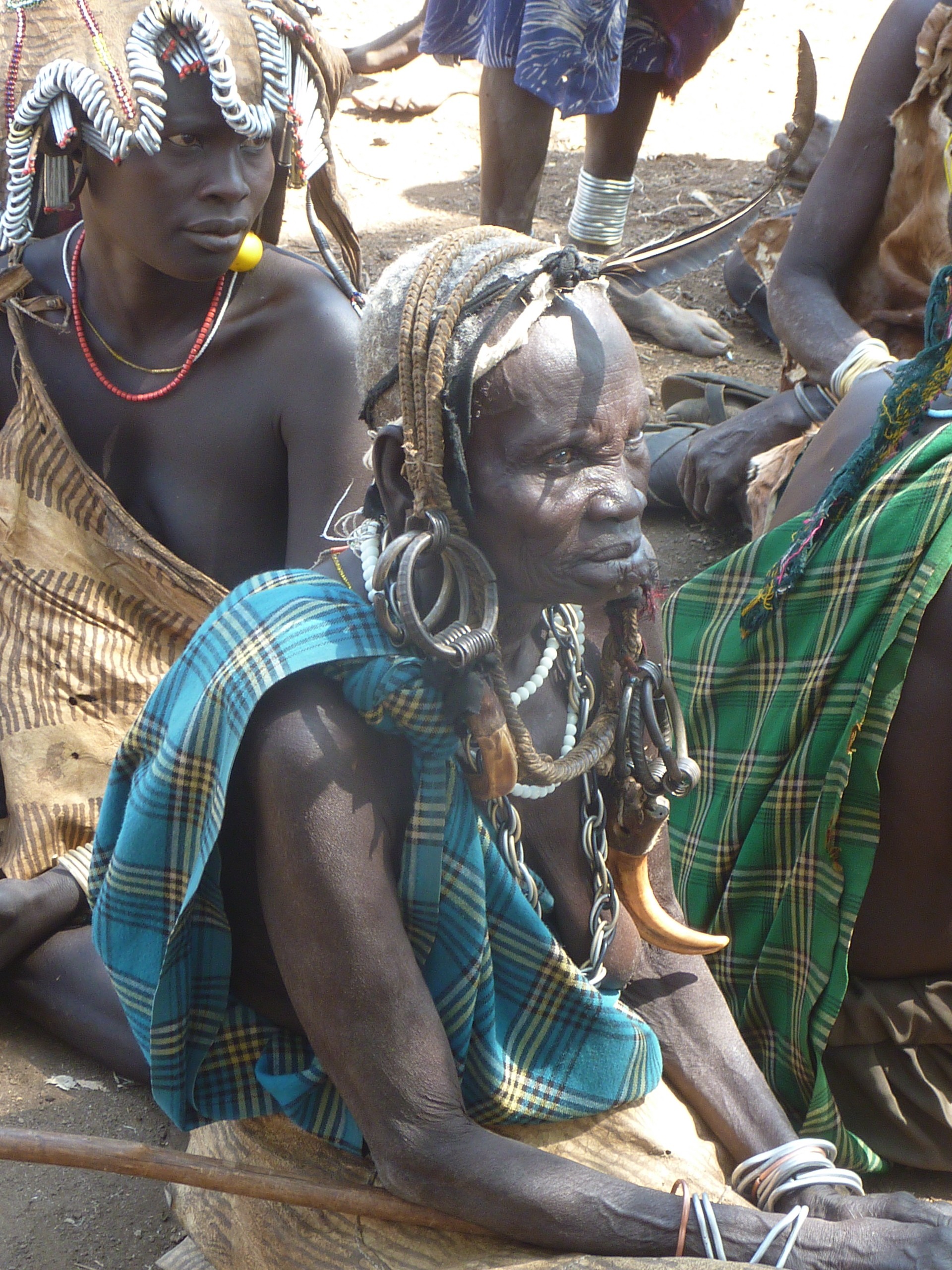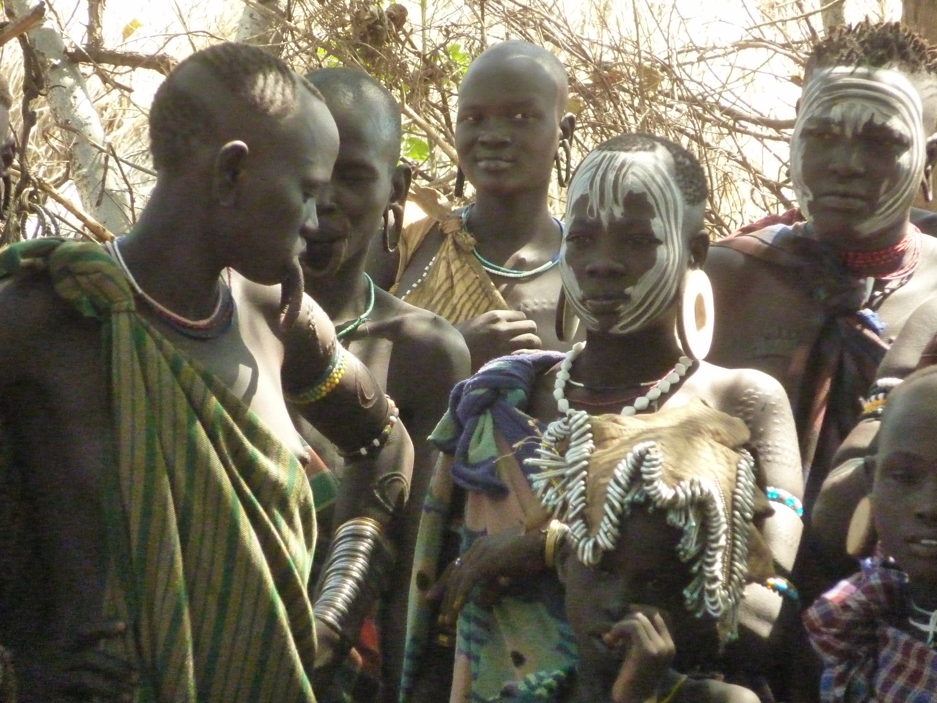 Na de Hamer gingen we langs de Mursi; met de schoteltjes in de onderlip. Deze stam was ons duidelijk minder gunstig gezind. Het leek wel boosaardigheid dat de vrouwen de schotels uit hun lippen deden. Met als resultaat een onsmakelijk loshangend stuk vel.