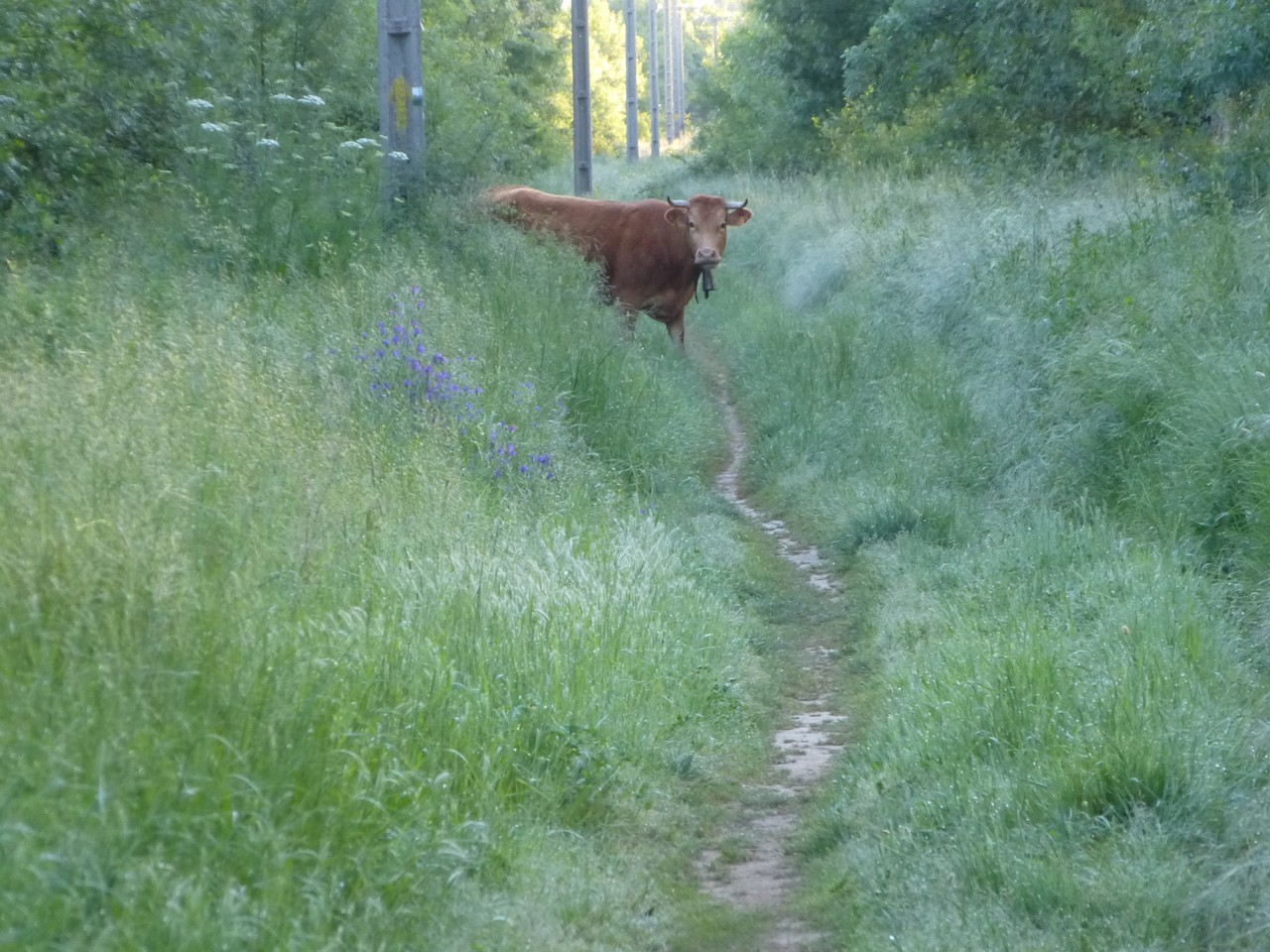 Het lopen gaat nog steeds goed en ik lig zelfs een dag voor op mijn eigen gemaakte schema. Dat komt omdat ik soms 2 kortere afstanden op een dag loop. Er zijn veel Italianen op de route. Ik heb een aantal dagen met diverse van hen opgetrokken. Italianen spreken over het algemeen niet veel buiten de deur, dus de communicatie is nogal eens verwarrend. Door de verschillende tempo van lopen raak ik steeds mensen weer kwijt of kom ze later weer eens tegen. Vandaag heb ik b.v. met een Sloveen en een Nederlander gelopen. Eigenlijk zijn het allemaal leuke contacten. Elke dag is ook weer een verrassing waar ik kom te slapen. De herbergen liggen hier verder uit elkaar dan op de andere routes, dus je moet toch goed bedenken waar te gaan slapen. En dan blijkt dat er weer iets is gesloten of opgeheven. Of b.v. zoals gister, dat er wel 2 herbergen zijn, maar dat het dorp zo klein is dat er niet eens een winkeltje of barretje anex restaurantje is. Ook lastig, want er moet uiteraard gegeten worden. In dat dorp was er een vrouw die gewoon bij haar thuis kookte voor wie dat wilde. Een leuke oplossing en ik denk dat ze zo ook een aardig centje bijverdient. Dat dorp bleek een jonge vrouw als burgemeester te hebben