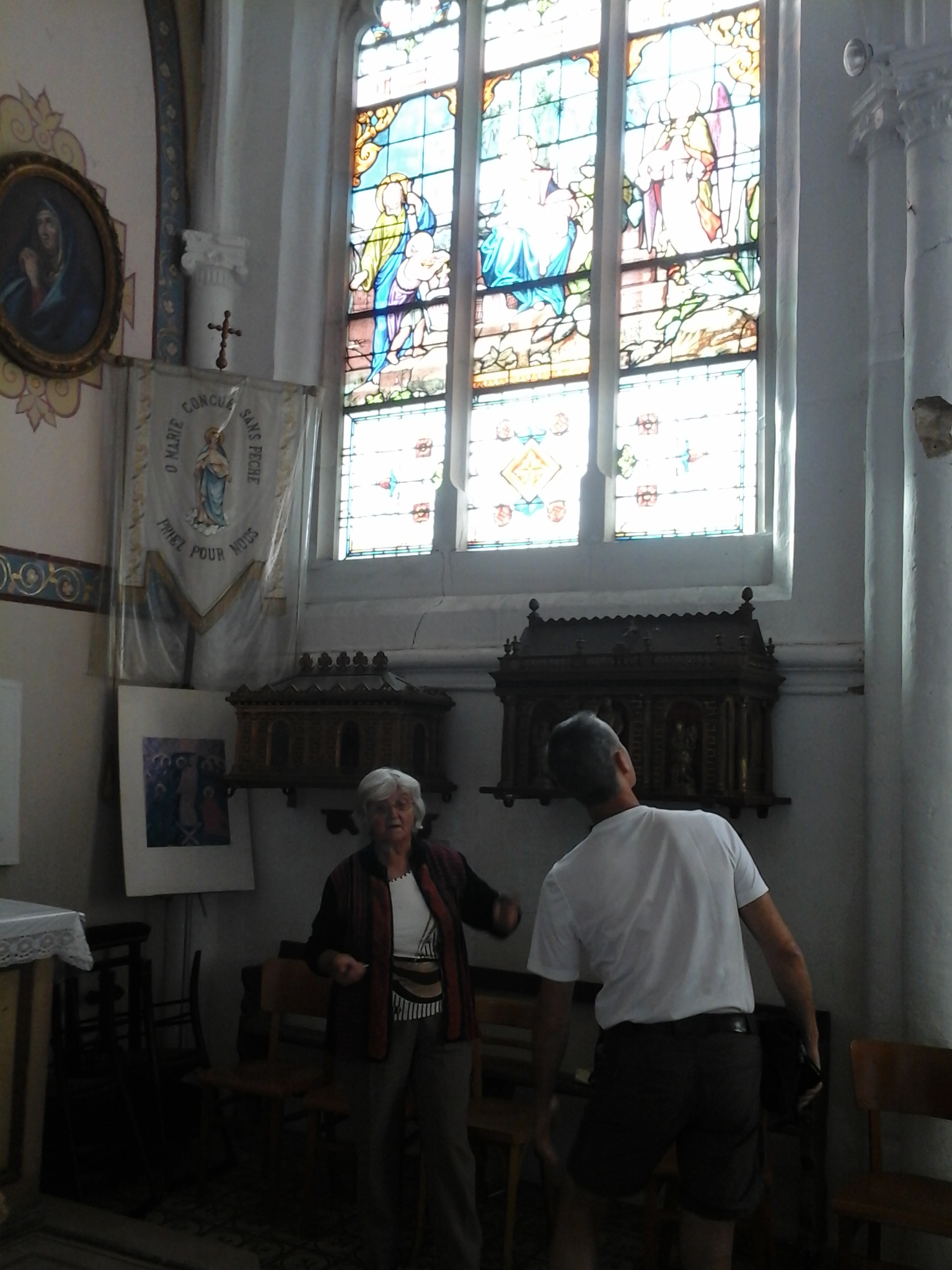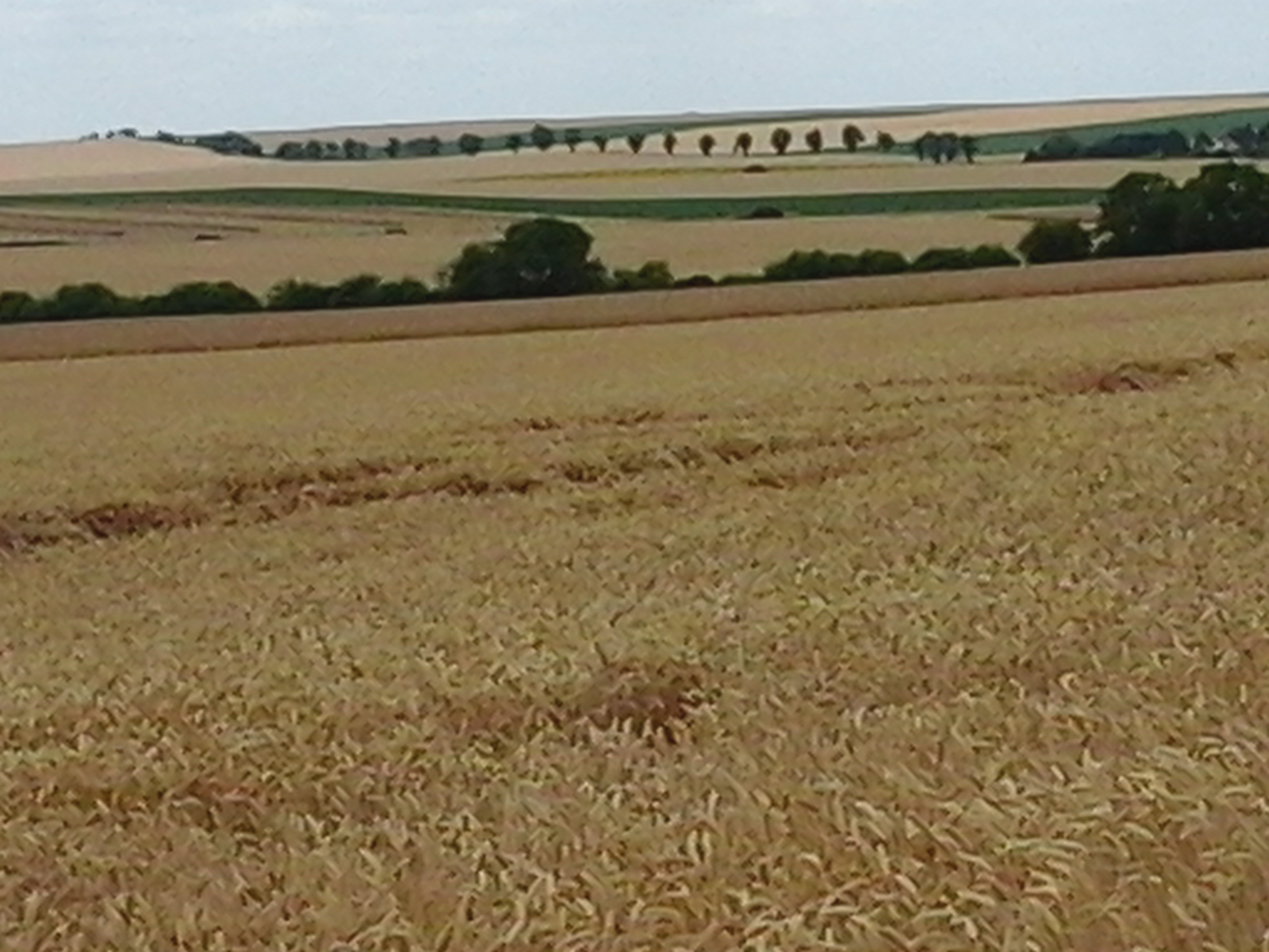 Ze bleek ook de bezitster van de sleutel van het gotisch/romaanse kerkje en wist over elk detail een boel te vertellen. Jammer dat ik de meeste foto’s niet met mijn tablet gemaakt heb en nu niet kan laten zien hoe gezeĺlig het was. Ook in Coole en Balignycourt bij heel gastvrije mensen geweest. Het is er eten wat de pot schaft en al meehelpende heb ik zo een nieuw gerecht leren maken van doorgeschoten witlof. Je zou het niet verzinnen, maar je maakt daar een heerlijke stamppot van. De boeren werken nu zowat dag en nacht want er moet geoogst. En dat gebeurt met kolossale machines op deze vele hectares.