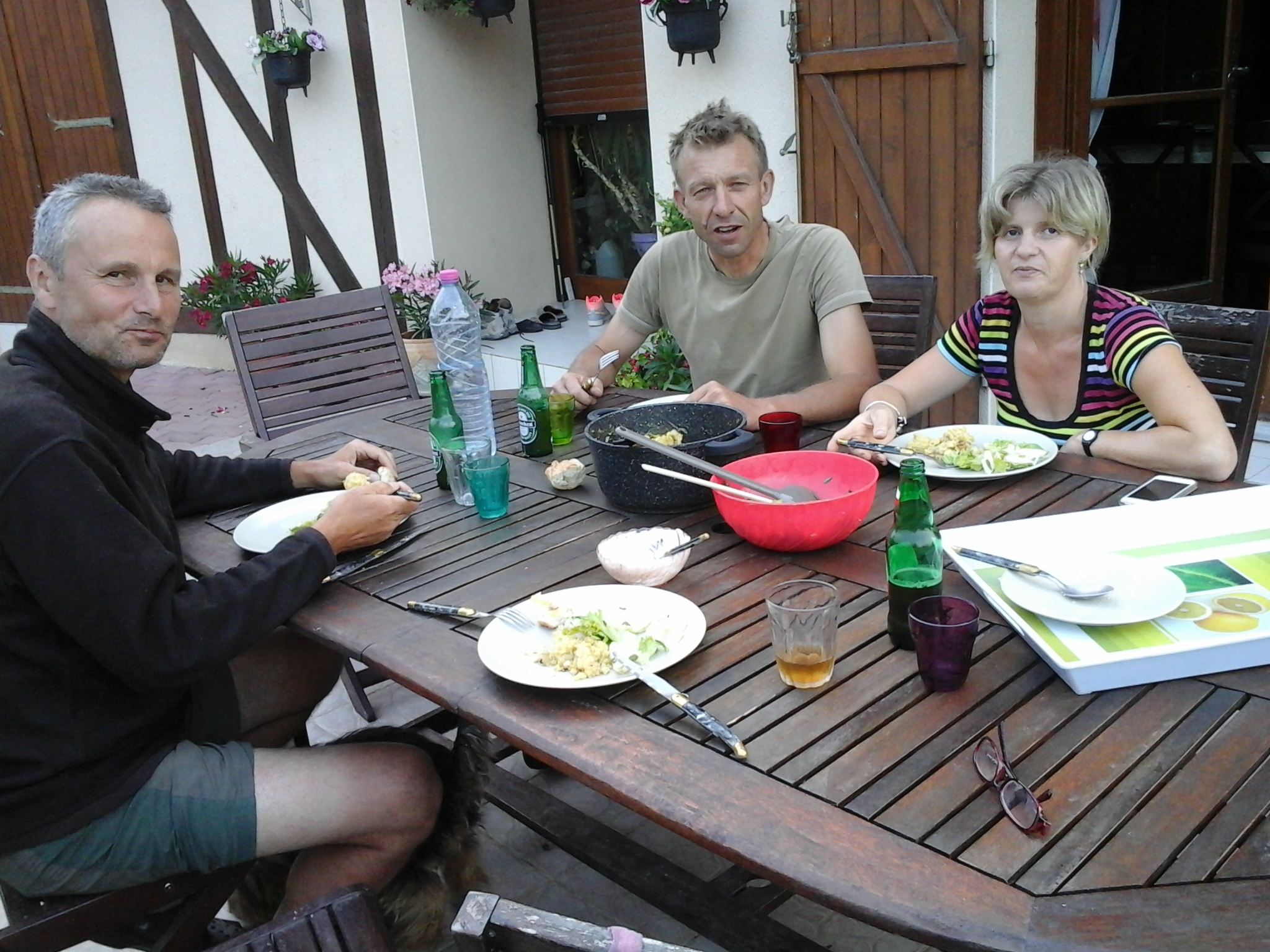 Midden in de Champagnestreek in Trepail met champagne ontvangen in een chaotisch boerderijtje door een geweldig lieve oude dame. Ik kwam er Wim uit Antwerpen weer tegen en voor het eerst de Italiaan Andrea. Madame Jacqueminet kletste ons de oren van de kop, maar we hadden een geweldige avond.