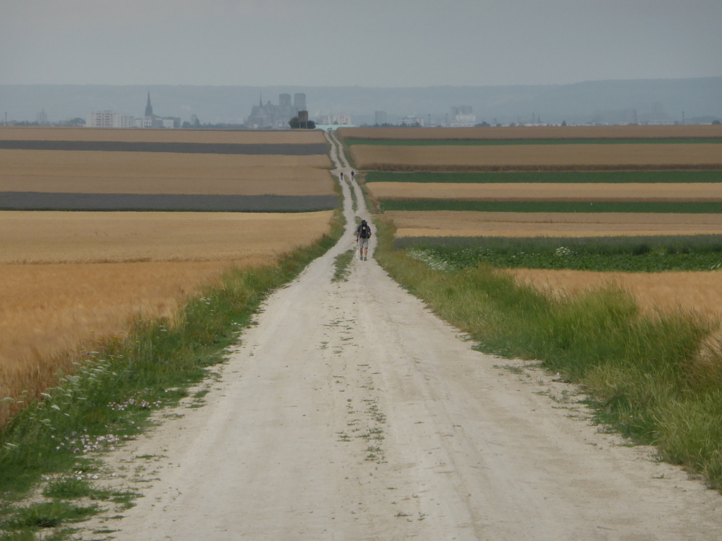 Vorig jaar heb ik eindeloos veel kaarsrechte kilometers gelopen in Spanje op de romeinse routes van Zuid naar Noord. Maar hier in Frankrijk is het hetzelfde. Het begon met de aanlooproute naar Reims. Vanuit Bazancourt loop je 10 km pal op de kahedraal af.