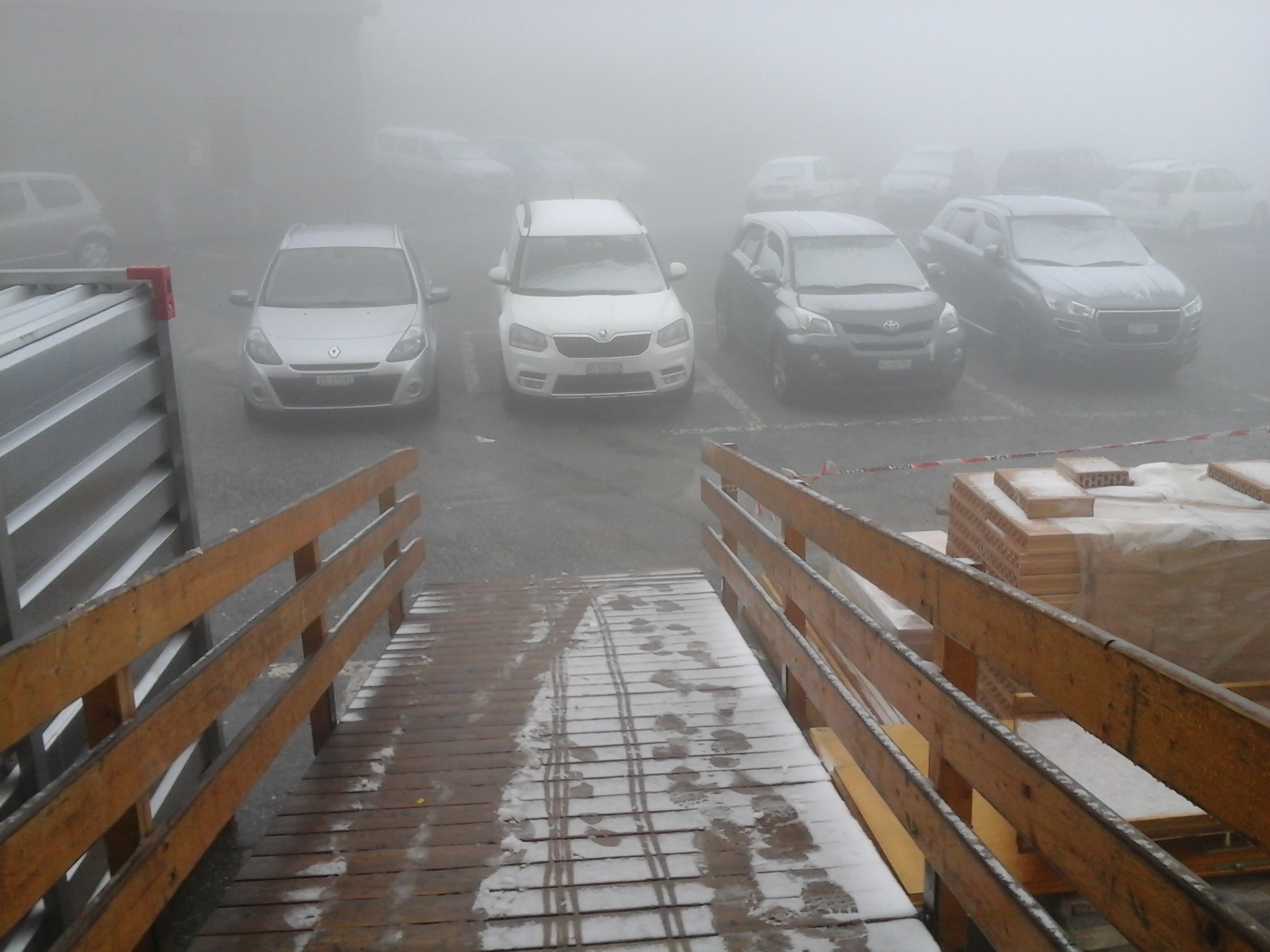 Het ziet er vandaag totaal anders uit dan gister. Je kunt geen 2 meter vooruit kijken en het heeft zelfs een beetje gesneeuwd. Daar gaan mijn mooie vergezichten vandaag…