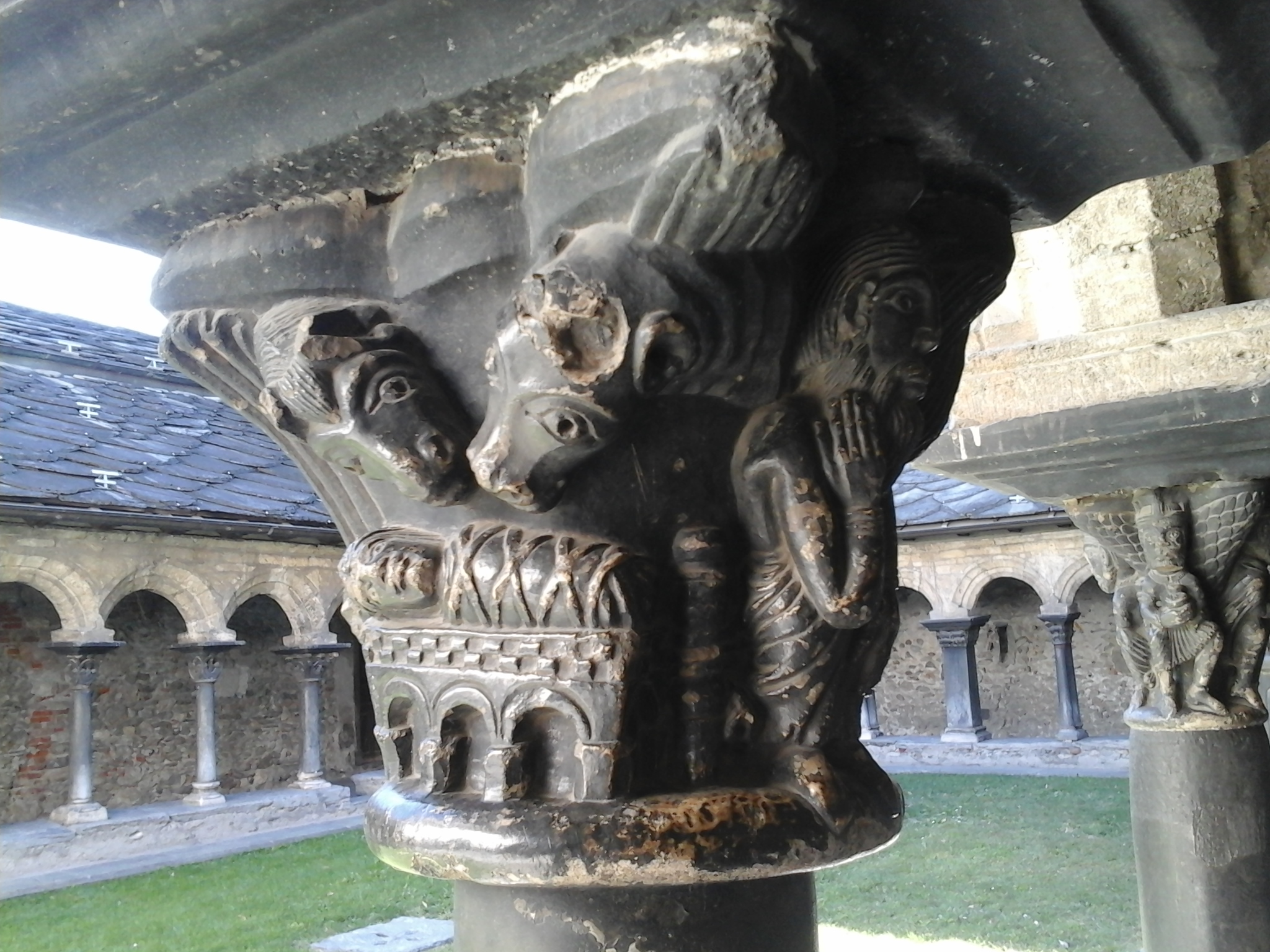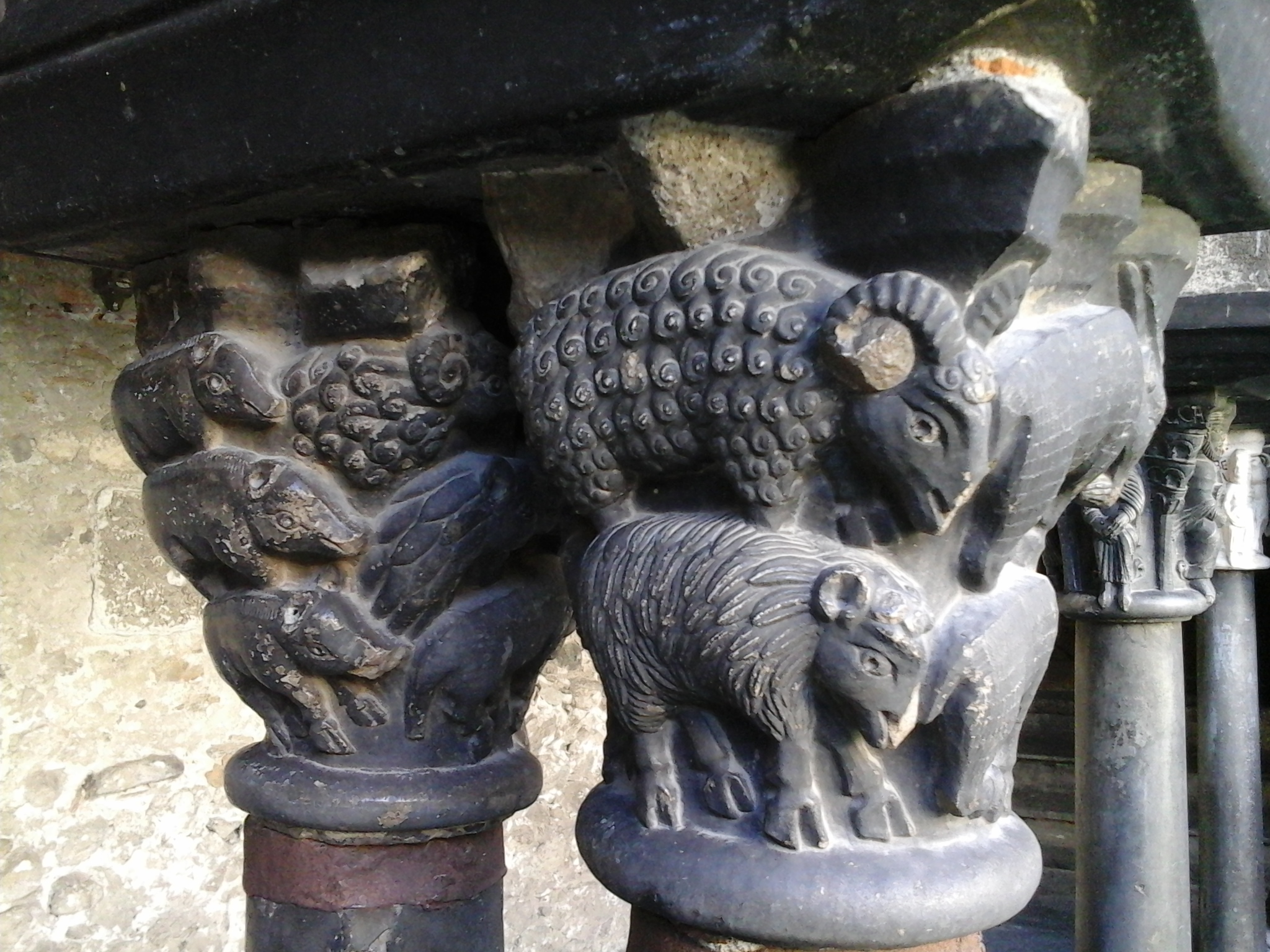 Ik ben toen, denk ik, niet in het klooster geweest van Saint Orso. Daar zag ik heel fraai bewerkte zuiltjes met o.a. het hele kerstverhaal. Mijn aandacht werd getrokken door onmiskenaar dezelfde geiten die mijn nachtrust trachtten te verstoren.