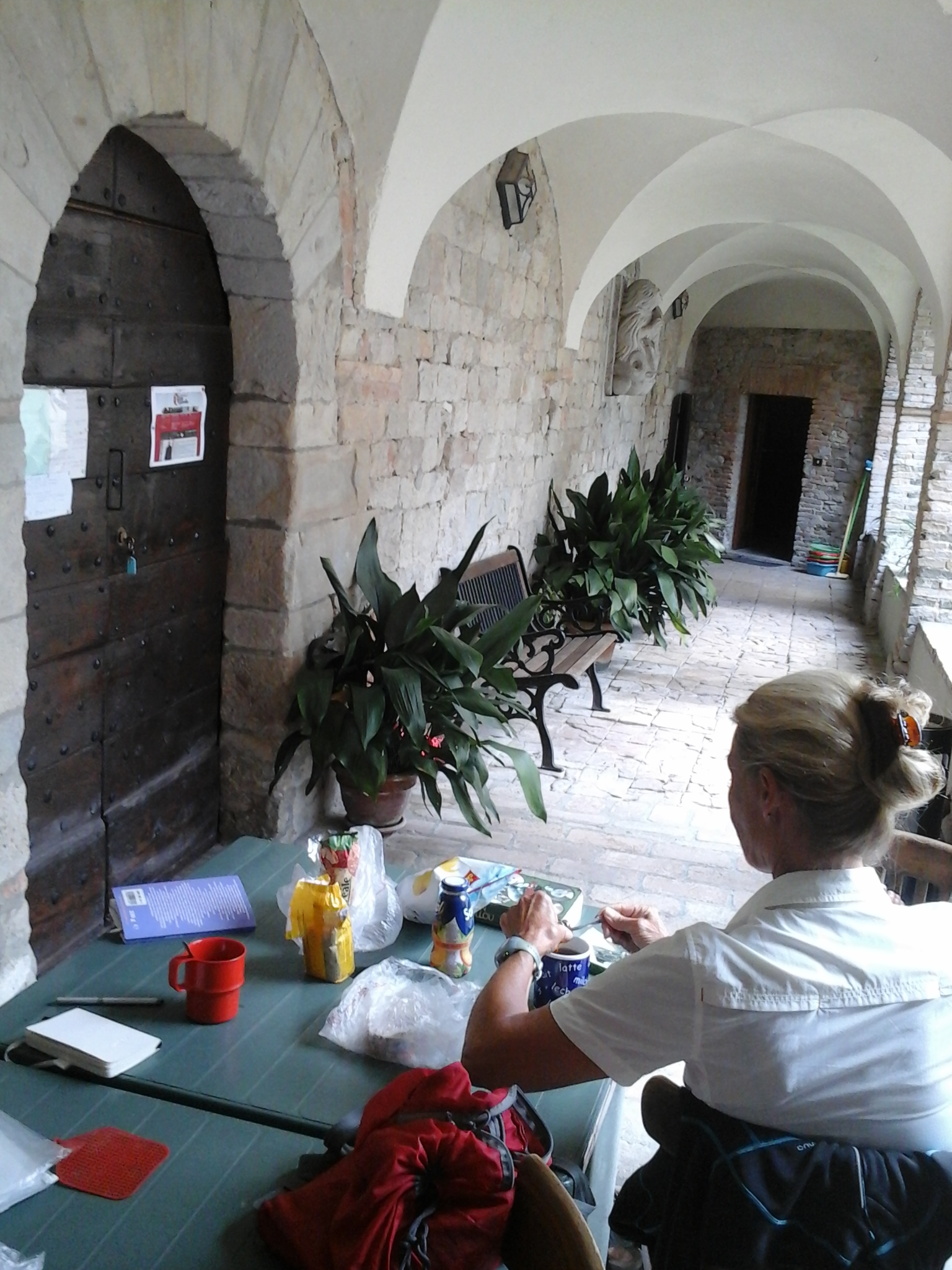 Een andere uitdaging is het dagelijkse eten. Waar is er iets onderweg of moeten we wat meenemen.het is fijn dat er in Italie zoveel meer barretjes, trattorias en restaurantjes zijn. De misverstanden over het menu zijn evenwel een terugkerend thema.Tagliata blijkt b.v. helemaal geen tagliatelle te zijn, maar een soort biefstuk. En de vino dalla casa blijkt altijd frizzante te zijn. Je moet fermo vragen als je dat niet wilt. Mijn Italiaans houdt niet over, doch elke dag wat beter. Wie ooit de film Big Night gezien heeft vergeet nooit meer met hoeveel zorg en amore Italianen het meest simpele gerecht tot een heerlijkheid omtoveren. Zo doet de risotto mij nu watertanden! Natuurlijk scheelt het wel dat je met al dat geloop elke dag weer honger als een paard hebt.