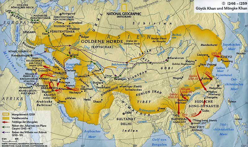 In die tijd creeerde de Khan familie een immens wereldrijk wat zich in het Westen tot in Turkije en Hongarije uitstrekte en aan de Zuidkant Iran, Tibet en een groot deel van China omvatte.