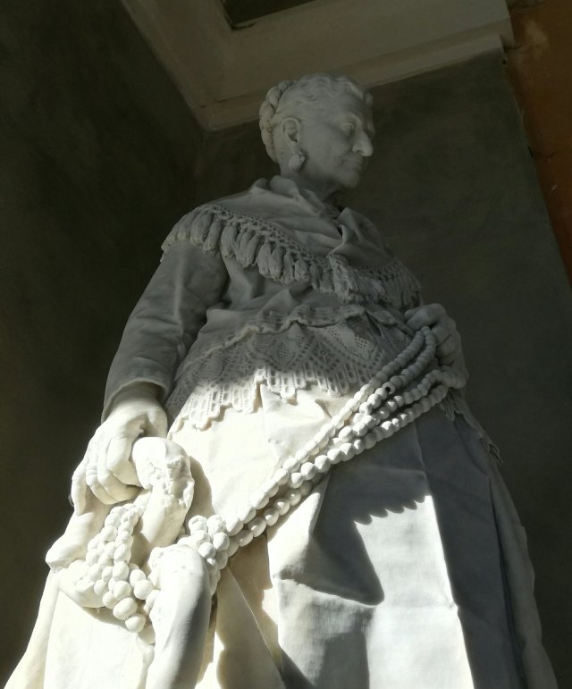 En in lange galerijen als monumenten; tegen elkaar opbiedend met de fraaiste beeldhouwerken; boven, onder en naast elkaar. Ik ga op zoek naar de tombe van Mazzini en kom er na een uur achter dat ik helemaal in de verkeerde hoek bezig ben. Uiteindelijk blijkt die helemaal niet zo mooi…. Op mij maakt meer indruk het verhaal van de straatverkoopster, die haar opbrengst van pretzels en noten spaart voor een graf. Ze is mooi vereeuwigd, maar of dat het leven waard is?