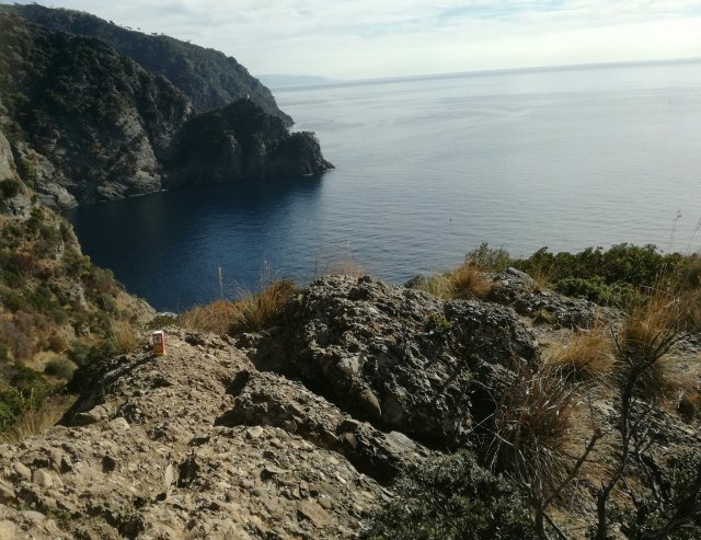 Ik ben niet alleen voor de stad gegaan, maar ook voor een verkenning van Ligurie. Zo heet de smalle kuststrook waar Genua middenin ligt. Een eerste wandeldag zit erop: van Camogli naar Portofino. Prachtig natuurgebied met mooi zeezicht. Wel gelijk een pittige route uitgekozen. Flink klimmen en dalen over rotsen en langs ravijnen, waarbij de kettingen er niet voor niks lagen. Kortom: veel zweten…..