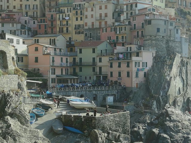 Ik ben overal geweest met het boemeltreintje wat 1x per uur gaat. In Corniglia moest ik me overigens flink uit de naad lopen om de hoge trappen op en neer te halen binnen 3 kwartier (de trein had vertraging gehad). Alles bij elkaar zijn er toch heel wat kilometertjes in de benen gaan zitten en was het donker toen ik in Monterosso weer op de trein stapte naar Genua. Misschien komt het er nog eens van het pad helemaal te lopen. Dat moet dan wel in de zomer als de dagen lang zijn. Hoewel: dan zijn er nog meer toeristen (schrik) en is het heet. Elk voordeel heeft zijn nadeel…