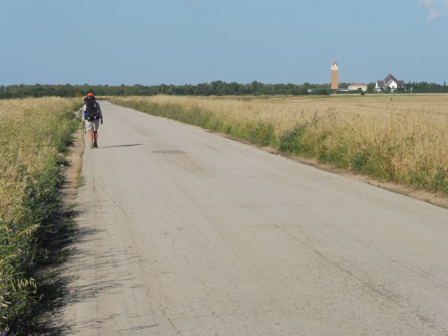In Troia kwam het water nog met bakken uit de hemel en verzopen we zowat in de lege straat toen we de poort van ons pelgrimshostel niet open kregen. Een Italiaan van de Osteria waar we gegeten hadden was ons behulpzaam: een echte ‘Don’. Inmiddels is het gewoon heet en droog en hebben we flink wat kilometers afgelegd op veelal rechte weggetjes.