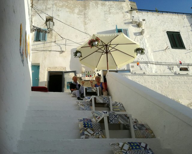 En Ostuni, de cittá bianca…. Het zijn echte vakantieplaatsjes en dan zijn ook wij ineens echte vakantiegangers geworden. Altijd in voor een lekkere negroni of zoiets.