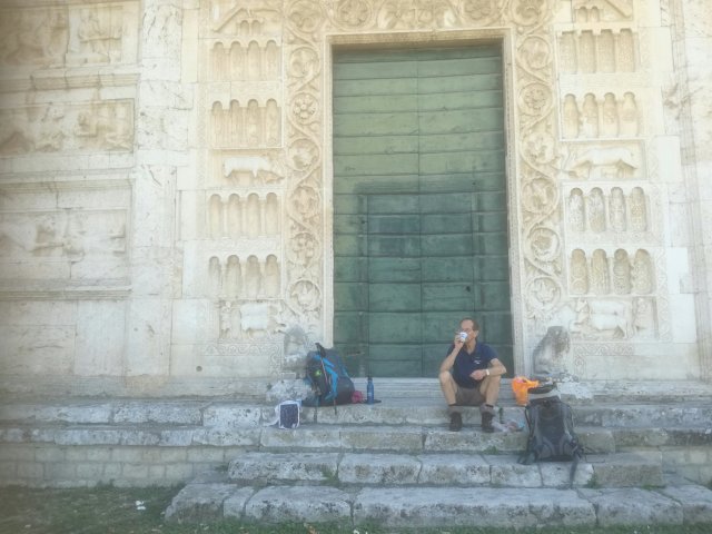 Helaas is de 14e eeuwse brug over het dal bij Spoleto nog steeds afgesloten sinds de aardbevingen van een paar jaar geleden, maar de omleiding via de San Pietro kerk bood ons een aangenaam lunchplekje met fabeltaferelen.