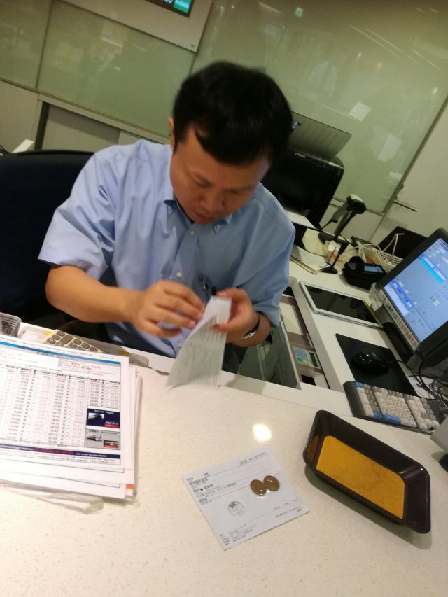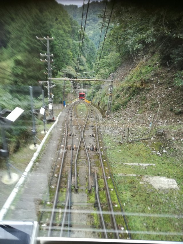 Vandaag zijn we met trein, metro,trein, kabelbaan en bus naar Kyosan gereisd. Het was een heel gepuzzel om in de grote stations het juiste perron te vinden. Het was spitsdrukte en je loopt er zo een half uur door de uitgestrekte ondergrondsen. We reizen met een soort prepaid OV kaart, wat handig is. En we hadden treintickets ontvangen van de lokale reisagent. Die had kennelijk geen rekening gehouden met de prijsverhogingen in het land per 1 oktober en had wat losse muntjes op tickets geplakt. Tja, dat glijdt natuurlijk niet zo gemakkelijk in een toegangspoortje. We troffen een behulpzame man aan een balie, die driftig aan het telefoneren sloeg en uiteindelijk ons de munten schonk en het ticket afstempelde.