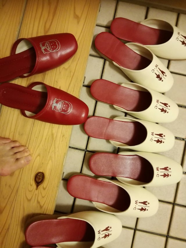 Ik heb al eerder geschreven over gewoontes en cultuur in Japan. Je valt hier van de ene verbazing in de andere. Ik vergis me nog steeds in welke slippers je waar aan moet. Schoenen moeten natuurlijk altijd gelijk uit. Maar dan heb je slippers voor binnen en voor buiten. Met de slippers voor binnen mag je niet op het toilet. Daar staan weer anderen. Je bent dus de hele tijd bezig met het verwisselen van slippers.