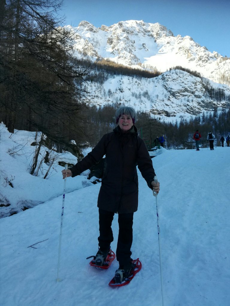 Valle Maira voldoet aan al mijn verwachtingen. Er ligt een dik pak sneeuw en de omgeving is idyllisch. Vandaag mijn eerste tocht op sneeuwschoenen. Even wennen en een beetje gestuntel af en toe. Maar ik doe het voor het landschap en we treffen het met het weer. Niet koud en rond de middag schijnt de zon over de bergtoppen het dal in.