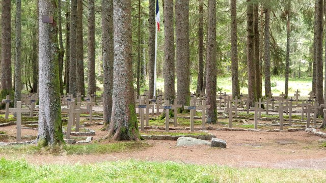 We zijn al veel hoogtepunten gepasseerd die bekend zijn van WO1. Feitelijk loopt de GR5 langs de oude linies. Tienduizenden soldaten hebben hier het leven gelaten. Zowel duitsers als Fransen. En waarvoor eigenlijk? De begraafplaats hoog in het bos nabij Tete des Faux en het zuidelijker gelegen Hartmannswillerkopf memorial lieten ons niet onberoerd.