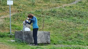 Het geluk was met ons want er was ook een bron waar we water voor eten en drinken konden tappen. Een unicum in de Vogezen waar alles door de zomer opgedroogd leek te zijn. En wij blij dat we de waterfilter toch niet