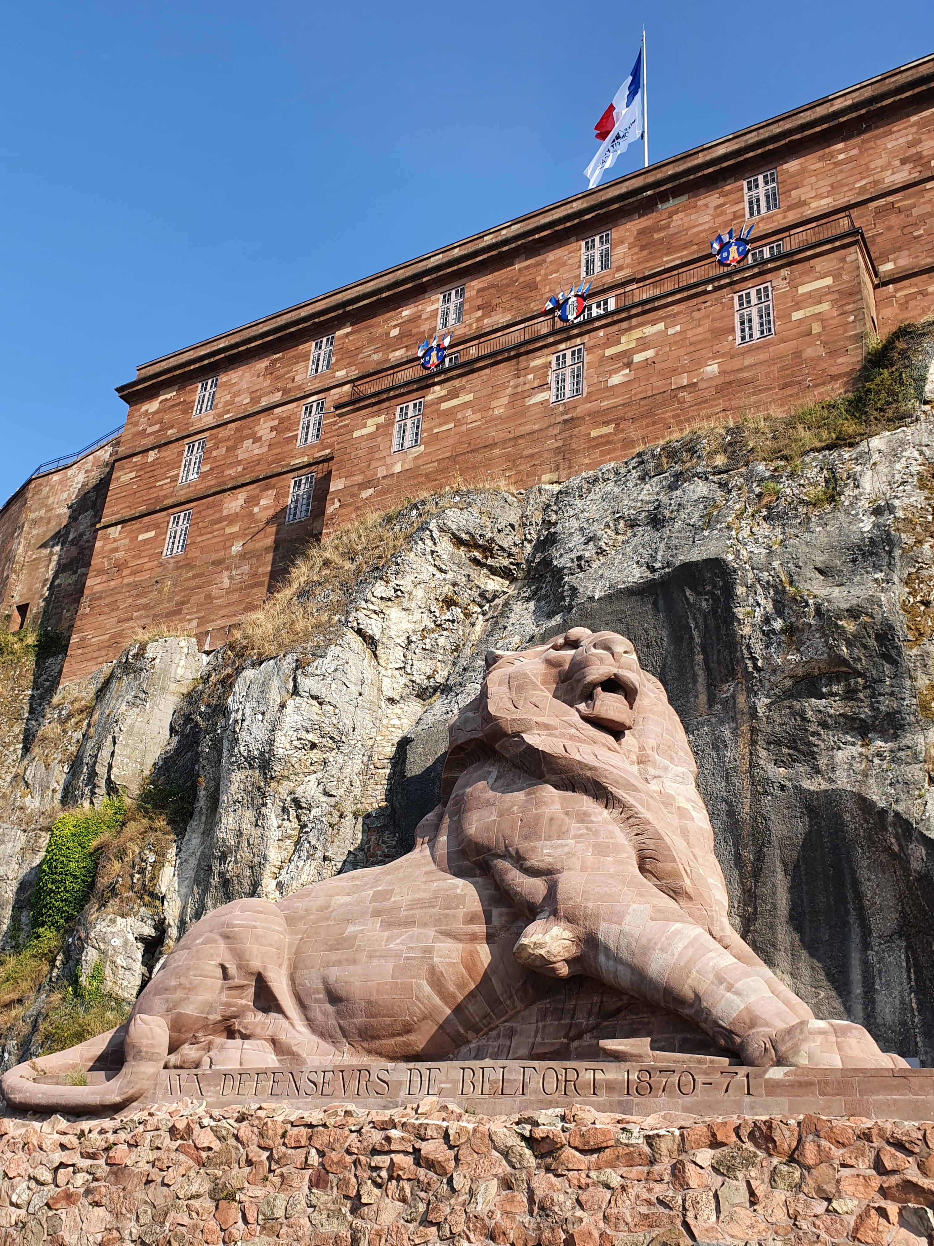 Tot slot brachten we nog een dag door in het historische Belfort. Belfort ligt op de scheidslijn van de Vogezen en de Jura en is er in het verleden meerdere malen in geslaagd om Duitse aanvallen te weerstaan. Het is bekend om zijn immense citadel met grote leeuw, die de heldenmoed verbeeldt van de franse soldaten tijdens de aanvallen van de Pruisen in 1870-1871. Deze leeuw is een ontwerp van de beeldhouwer Bartholdi, die ook het vrijheidsbeeld in New York heeft ontworpen.