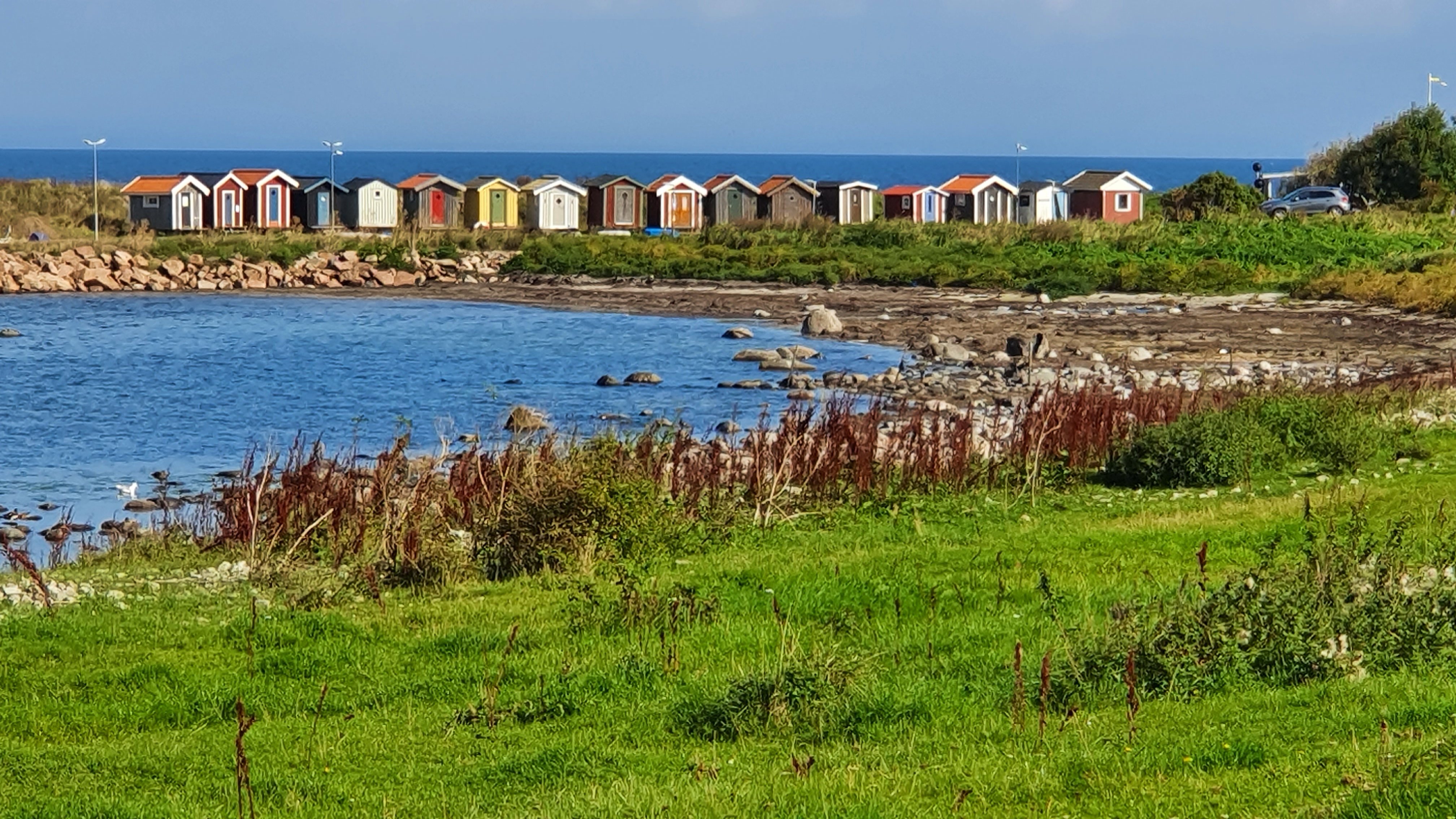 Skane is een regio schiereilandjes aan de Westkust in het zuiden. Het zijn populaire vakantieoorden voor de Zweden. De kustwandeltochten zijn prachtig. Fenomenale uizichten op de zee (Kattegat). Kiezelstranden met schapen als er gras is. Hoge kliffen van rood graniet met strandjes, die vol gladde kiezelbollen liggen; grotten. Steigertjes in zee met aan het eind een trappetje, zodat je gemakkelijk kunt gaan zwemmen. De schuifelende witte badjassen verbazen ons al niet meer! We hebben zonnetje en windstil deze eerste dagen. Het kan niet beter. Maar sommige dingen zijn erg lastig. Het is een hele toer om een cafeetje of restaurant te vinden wat open is. Het vakantieseizoen is hier sinds half augustus voorbij, met als gevolg dat er heel veel dicht is. En als er een eetgelegenheid open is dan sluit die al uiterlijk 8 uur. De eerste 2 dagen vergisten we ons daar behoorlijk in. We stonden overal voor dichte deuren. Ook de supermarkt. Gelukkig maar dat we veel eten in de auto hebben en dat campings hier een keuken hebben. Zo werd het dus 2 avonden achter elkaar heel laat eten. We slapen op campings en daar is het super rustig. Ze hebben er prima voorzieningen. Gister hebben we een toproute gelopen van Torekov naar Bastad: 23,5 km. We moesten met de bus terug naar onze camping. We hadden uitgezocht waar en hoe laat de laatste bus zou gaan: 17.40. We hadden lekker gelopen en waren ruim op tijd bij de bushalte. Toen hoorden we dat je niet in de bus kunt betalen, maar dat je dat doet met een QR code op je mobiel. Hoe simpel kan het zijn? App downloaden, rit invoeren en betalen. Tja, dat gaat niet met een betaalkaart. Het moet met een creditcard. Wat een gedoe om dat op straat te doen. Natuurlijk lukte dat ook niet een twee drie. En toen was de batterij van de telefoon bijna leeg. Heel spannend of het zou lukken. Ja…net op tijd. In de bus gaf de scanner aan: ongeldig!! We hadden net zo goed gewoon in kunnen stappen, want nu hebben we waarschijnlijk ook illegaal meegereden. Nog zo’n soort verhaal: vanochtend wilden we alvast een camping boeken in Mora (800 km noordelijker) maar dat moet ook online. Je moet je registreren etc. Alles alleen in het Zweeds! Hij pakte de adresgegevens niet en het lukte niet. Bellen, chatten. Nee, het moet online. We werden er tureluurs van. Nu rijden we morgen gewoon op de bonnefooi daar naartoe. Het valt ons tegen dat er zo weinig in het Engels te lezen is. In dit hoog gedigitaliseerde land wordt het leven dan toch nog ingewikkeld. De vertaalapp biedt soms uitkomst. We troosten ons met de gedachte dat we heel snel Zweeds aan het leren zijn. Het voelt bijna als een cultuurschok.