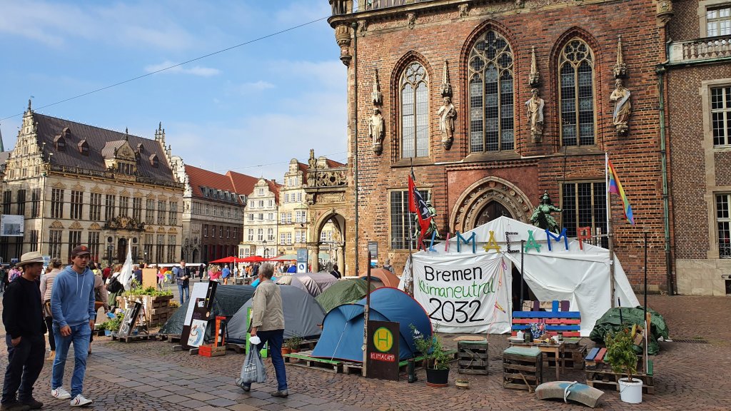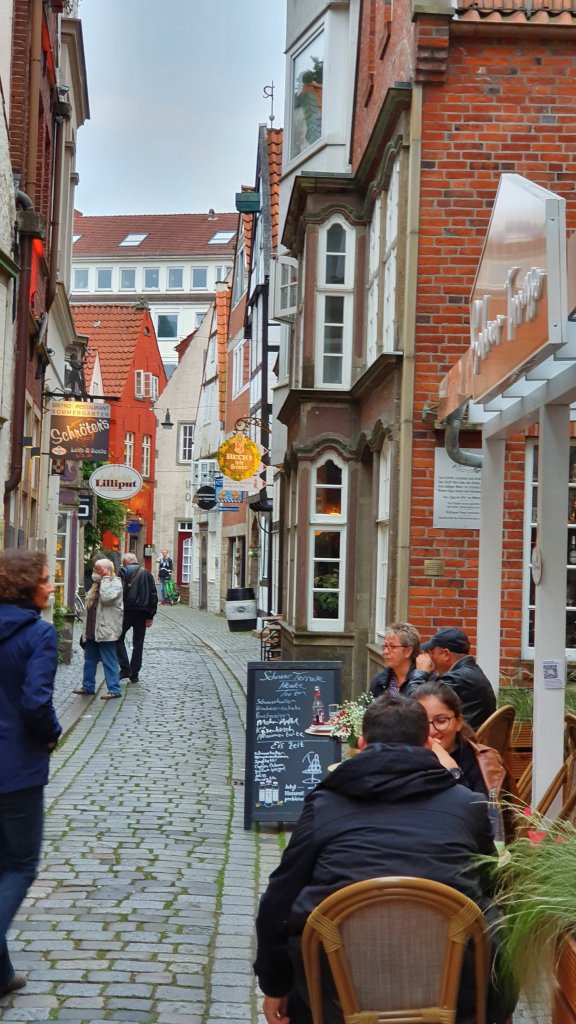 Het oude RathuisBremen als HanzestadVolop aktie in Bremen: een kamp met klimaateisen; en een demonstratie tegen gebruik van apen als proefdierenIngang gouden Bottcherstrasse met architectonische kunst uit het interbellumImposante Petri DomSchnoorl: wijkje met smalle oude straatjes