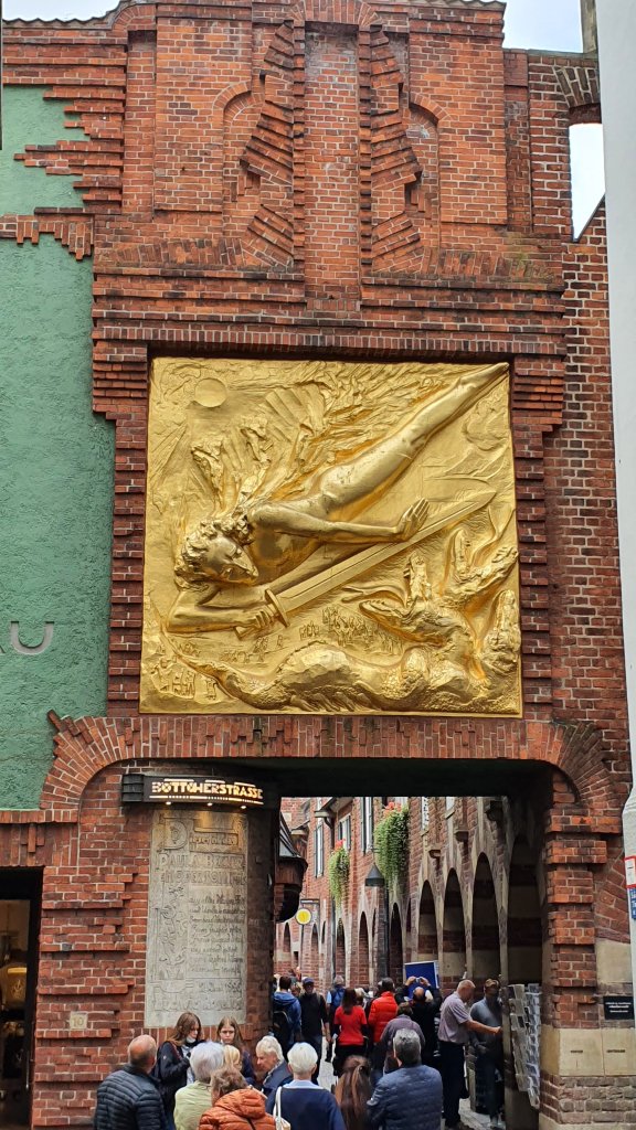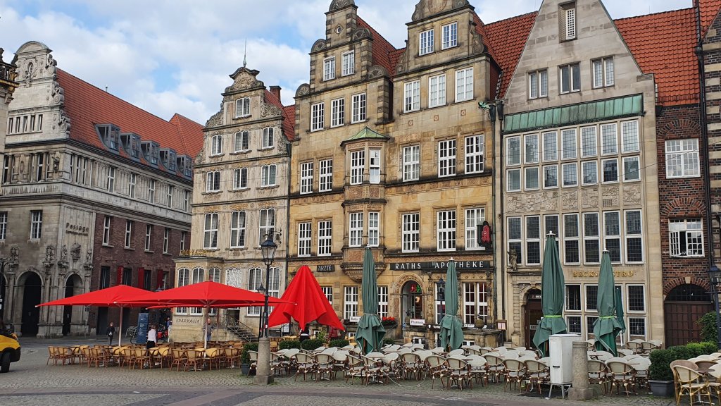 De weg terug is toch wat lang om in 1 dag te doen. We kiezen Bremen als overnachtingsplaats. Dat pakt verrassend goed uit. Bremen is de moeite van het bezoeken waard. De oude binnenstad heeft veel moois te bieden met een geschiedenis die teruggaat naar Karel de Grote (8e eeuw). Ik vond het bijzonder interessant om op het centrale marktplein een groot beeld te ontwaren van ridder Roland ( bekend van het zgn Roelantslied). Deze historische figuur herinner ik me nog goed uit Roncesvalles, waar ik meerdere malen hospitaleerde voor het Jacobsgenootschap. Aldaar werd hij verslagen door de Basken, die dat nog elk jaar vieren.