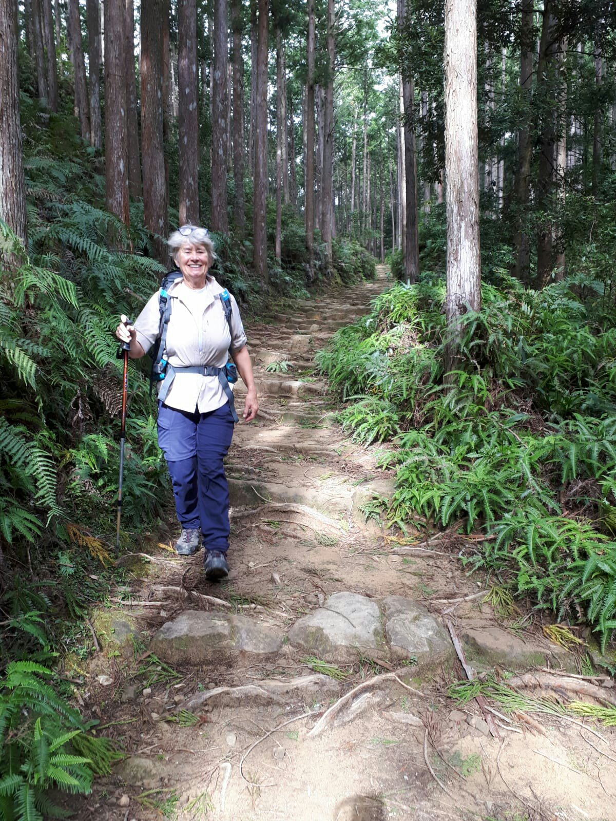 We hebben nog één keer een dag lekker kunnen lopen op de Kumano Kodo. We stonden te popelen om te gaan op die ene droge dag. Weer een tocht langs kleine heiligdommetjes, door hoge bossen en hier en daar mooie vergezichten.