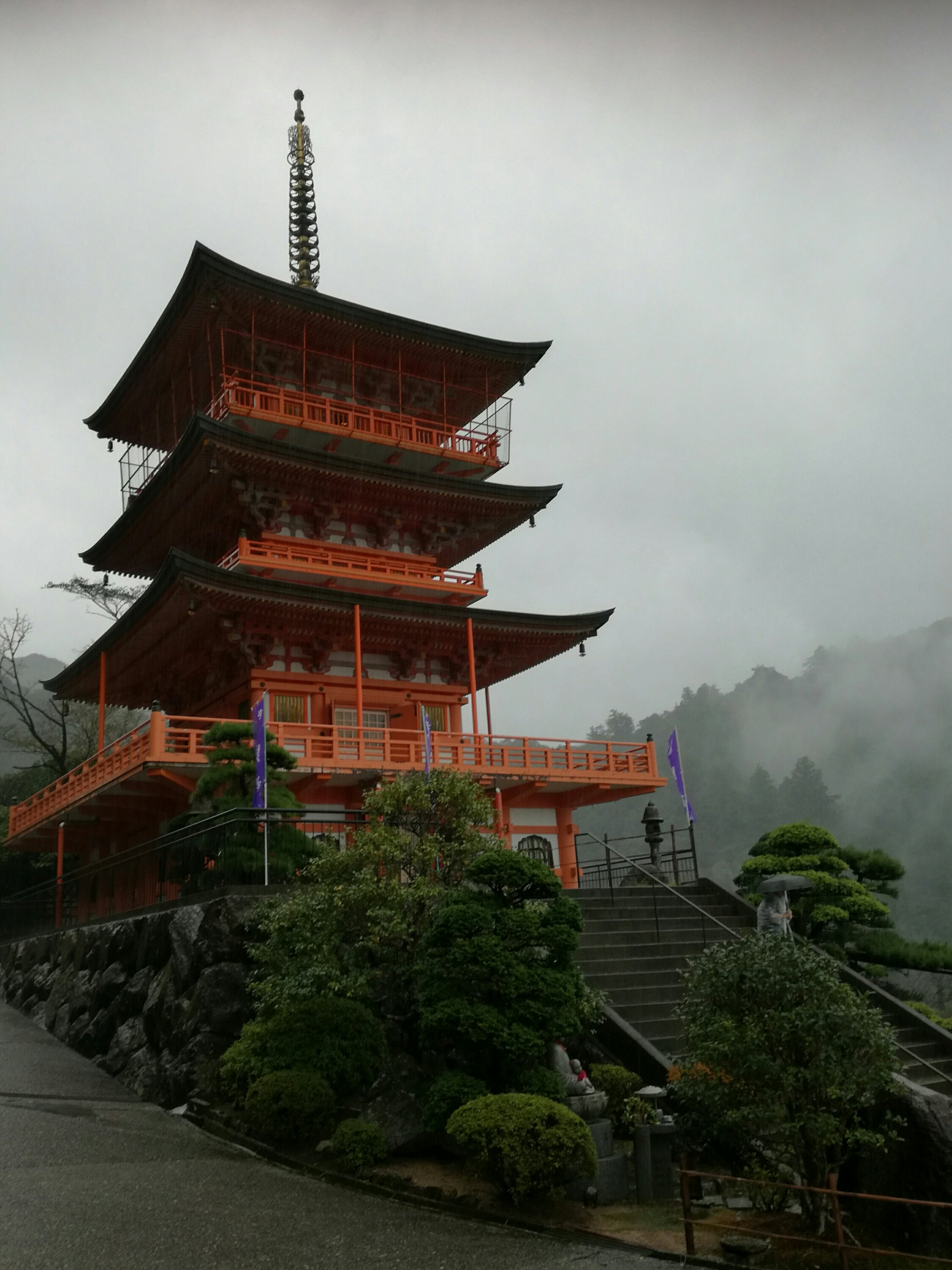 Daarna hadden we weer een tempeldag op het programma: Nachisan. Helaas hadden de goden besloten dat het ook op deze tempeldag pijpenstelen moest gieten. Werkelijk onophoudelijk de hele dag. We hebben ons niet laten weerhouden, maar hebben niet alles kunnen doen wat we eigenlijk wilden. Heel jammer. We troosten ons met de gedachte dat we toch alle grote tempelcomplexen van de Kumano Kodo bezocht hebben.